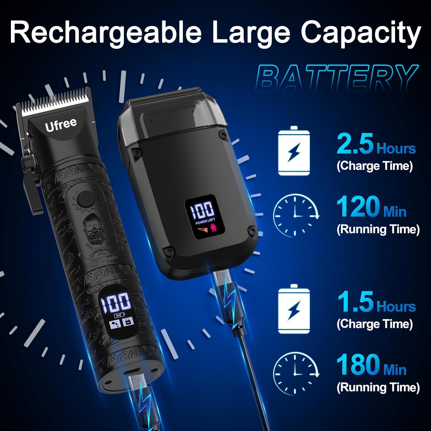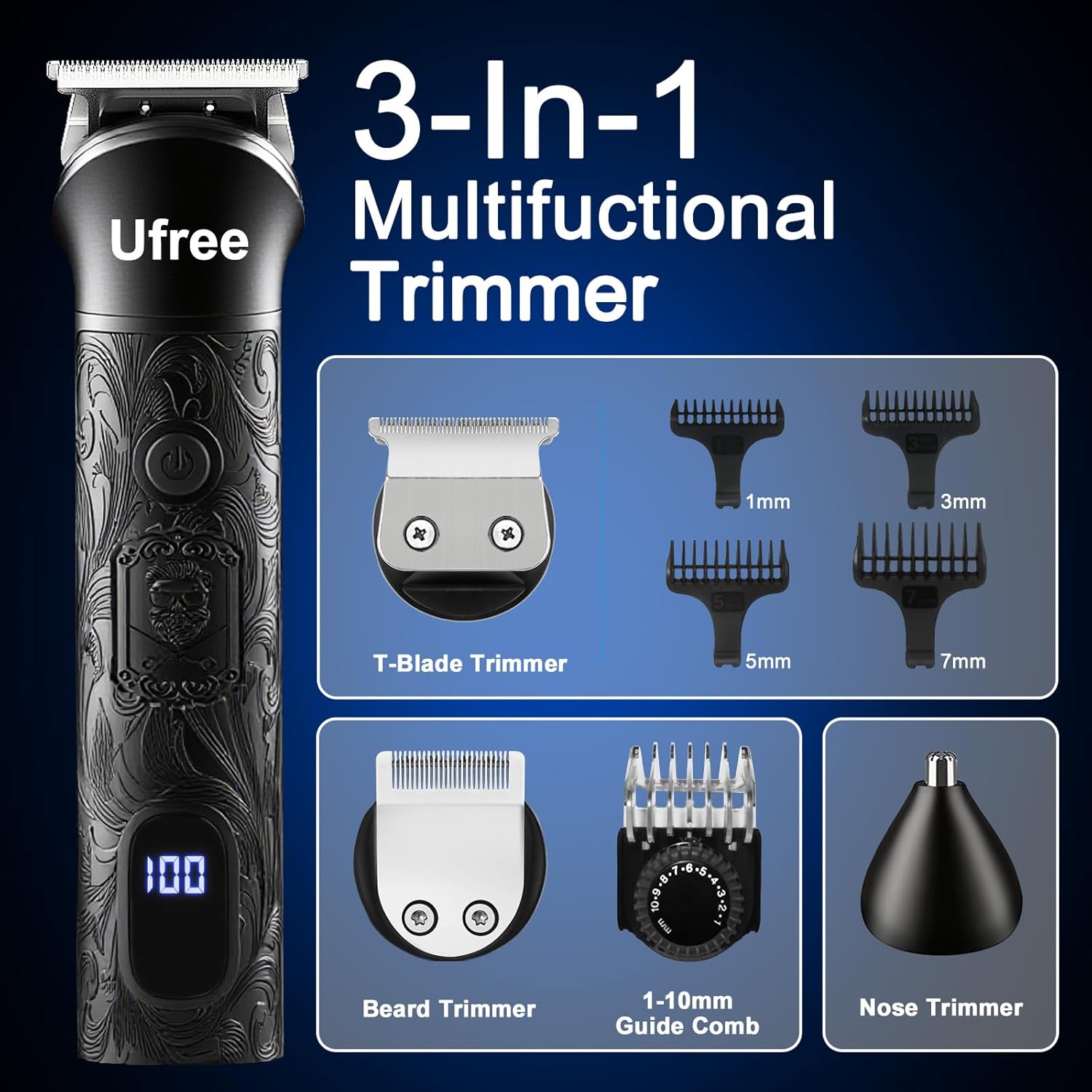 Ufree Beard Trimmer, Hair Clippers Mens Shaver Electric Razor, Hair Trimmer for Men Cordless Barber Clippers and Trimmers Set, Hair Cutting Kit for Men Grooming Gifts, Black