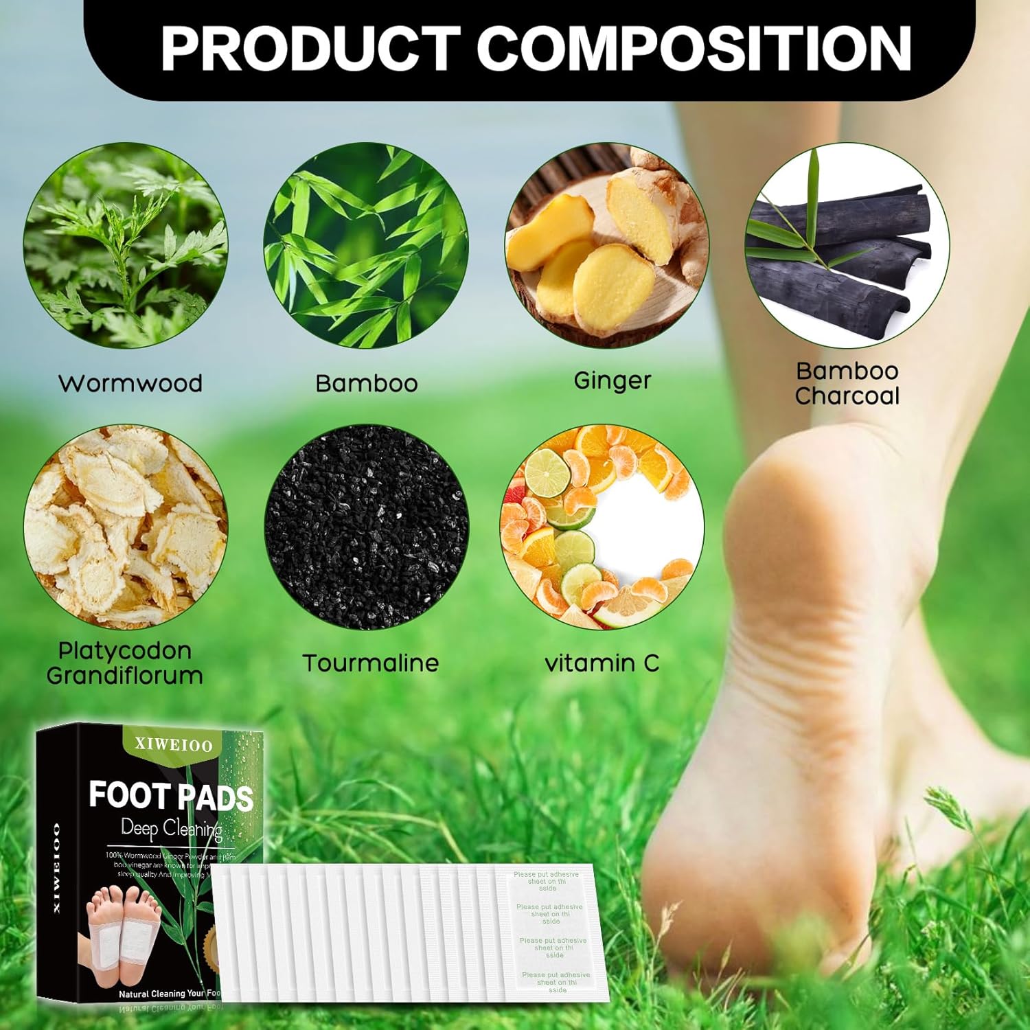 - 💕XIWEIOO 50 Pack Natural Foot Pads 💕 Our premium deep cleansing foot pads not only relieve tension and fatigue but also promote brighten and soften the skin Customer Satisfaction is Our Priority