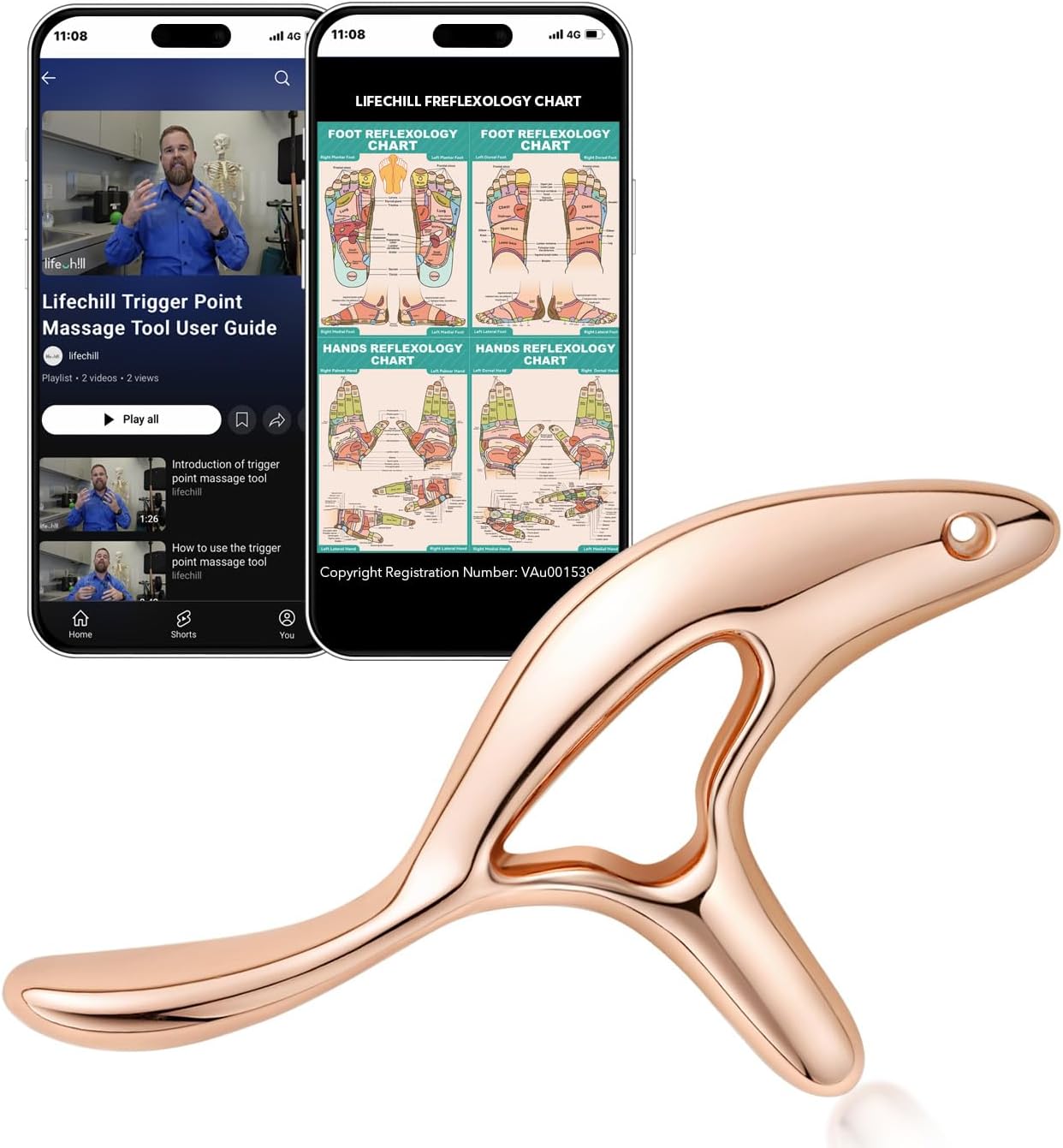 lifechill Trigger Point Massage Tool for Gua Sha, Lymphatic Drainage Massager, Deep Tissue Thumb Saver Acupressure Tool for Full Body Pain Relief, Gold