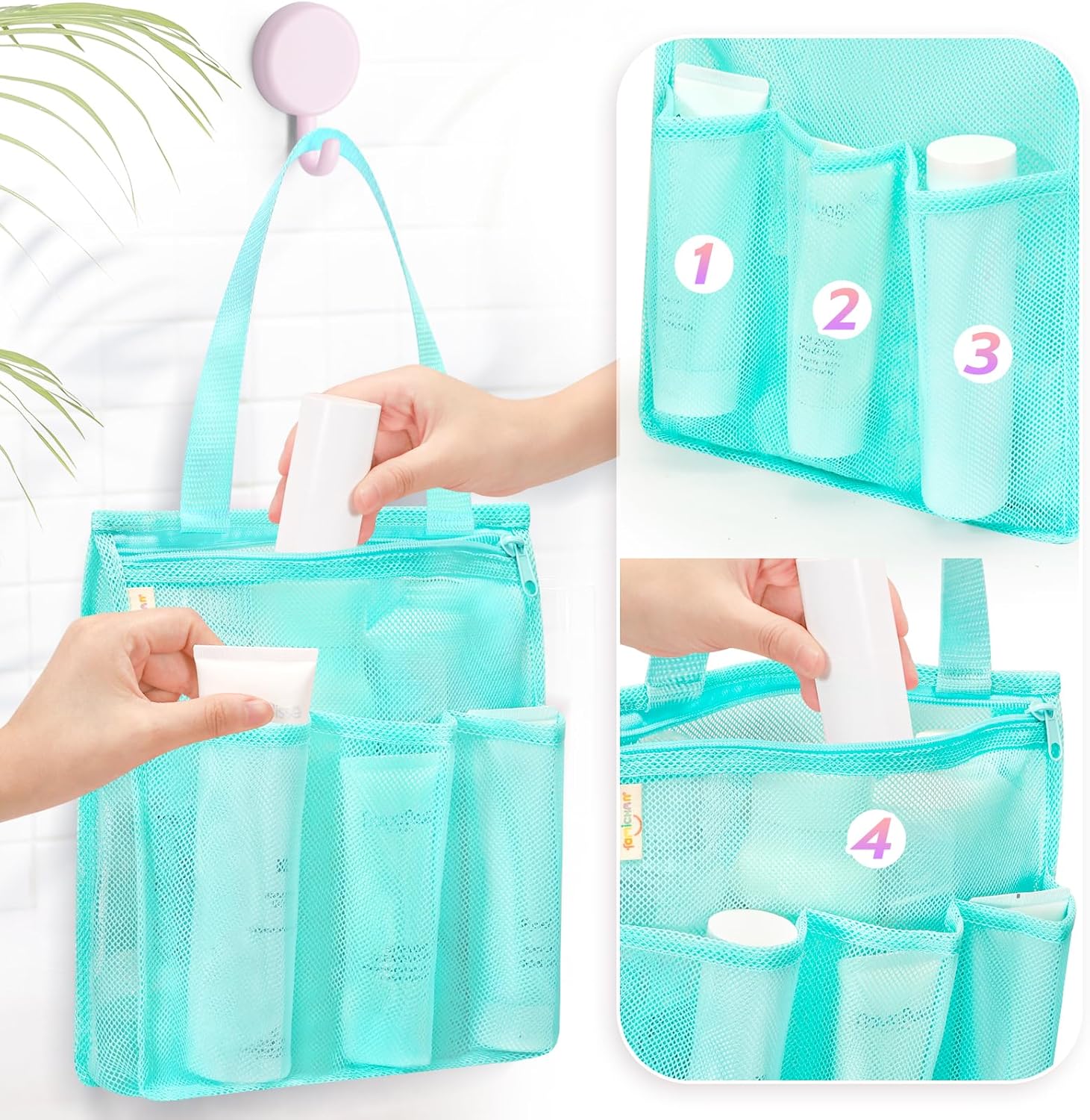 - [ Quick-Drying Mesh ] Hang it on any showerhead or bathroom hook. The breathable mesh allows water to drain quickly, keeping your caddy fresh, clean, and ready for its next use.