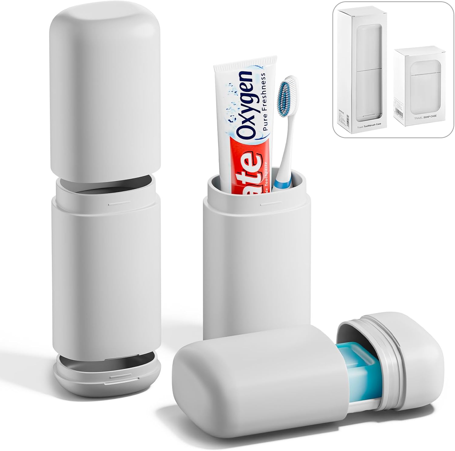 - Multi-Functional & Stylish: This travel soap toothbrush holder adopts a minimalist grey design, and its round appearance makes it look modern and cute. This travel set provides the complement to your bathroom, travel, business trip, gym or camping