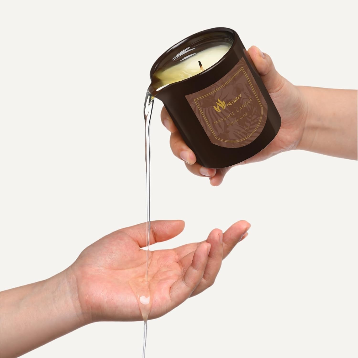 MELONY Massage Oil Candle for Pure Relaxation - 8.1 oz - Moisturizing Essential Oil Body Massage Candle for Home Spa- Amazing Gift for Women & Men (Saffron Blaze)