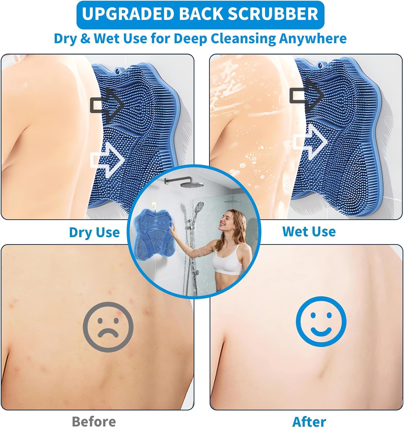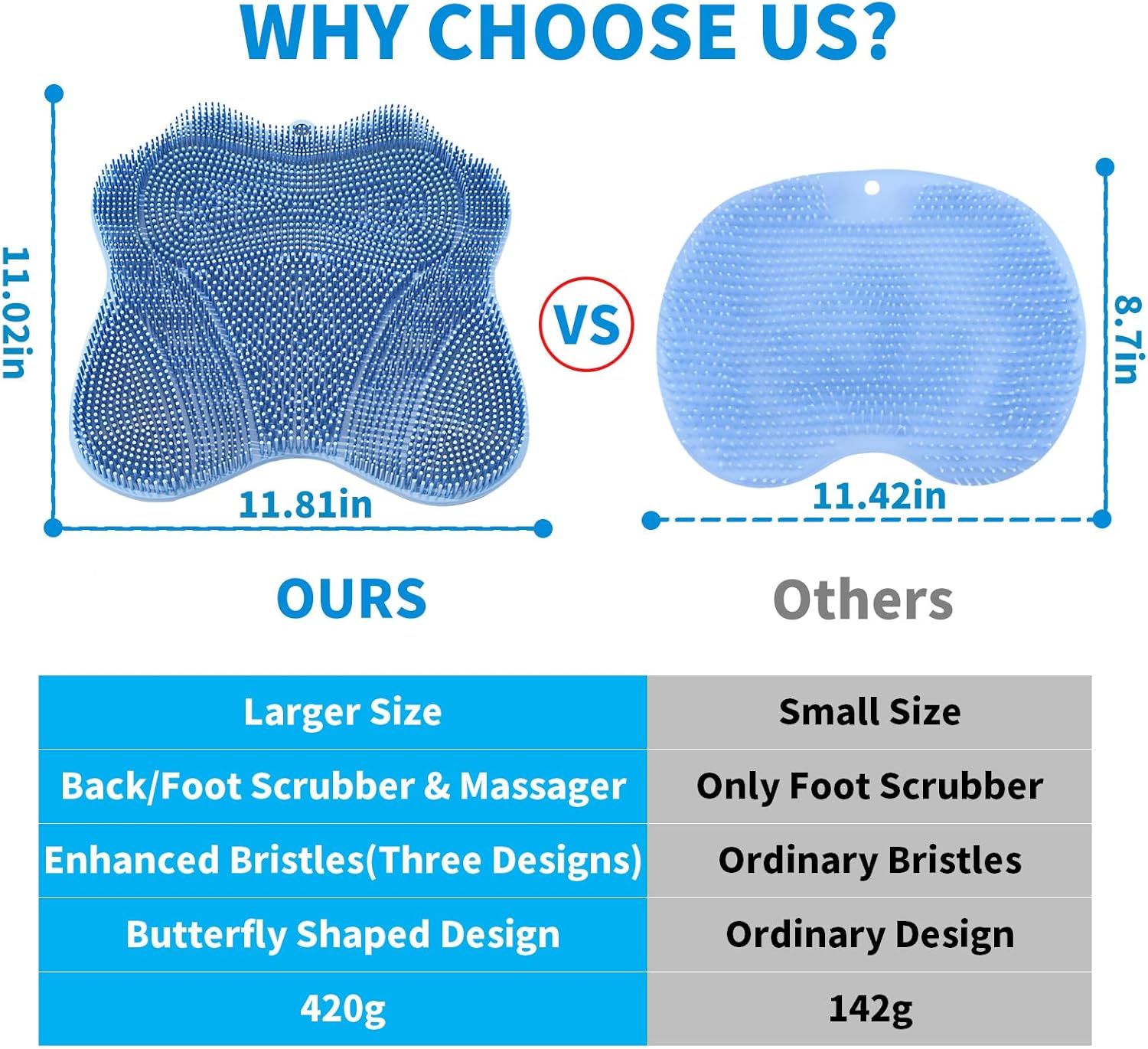 - [LARGE BUTTERFLY FORM DESIGN]: Experience total back & body care with our Premium back & foot scrubber in shower(11.81" W x 11.02" L) outperforms regular silicone back scrubbers with its spine-hugging butterfly shape – engineered for full-back contact that glides across every curve, delivering deep exfoliation + invigorating massage.