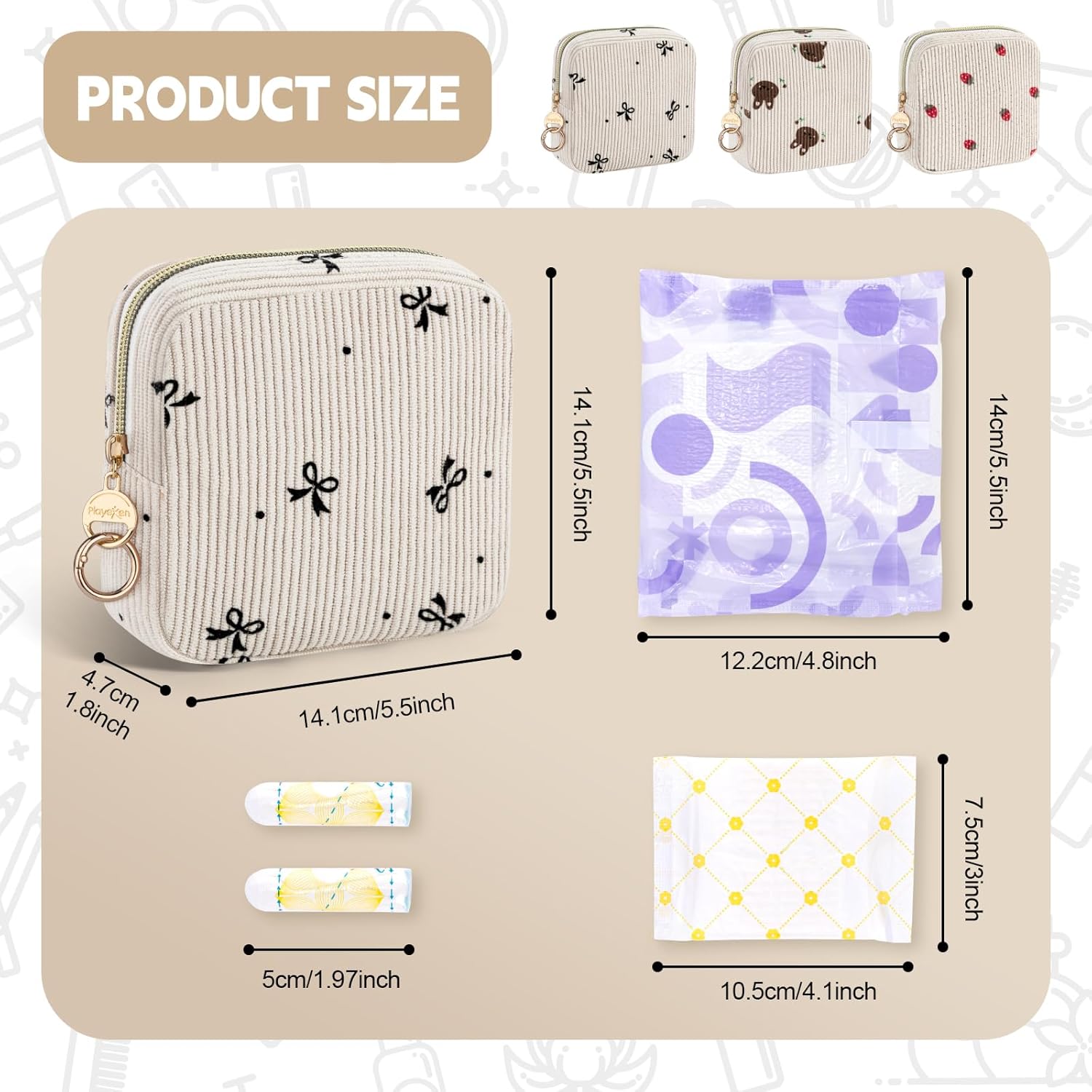 Period Bag for Teen Girls, Corduroy Cute Sanitary Napkin Storage Bag, Menstrual Pad Bag Tampon Holder for Purse