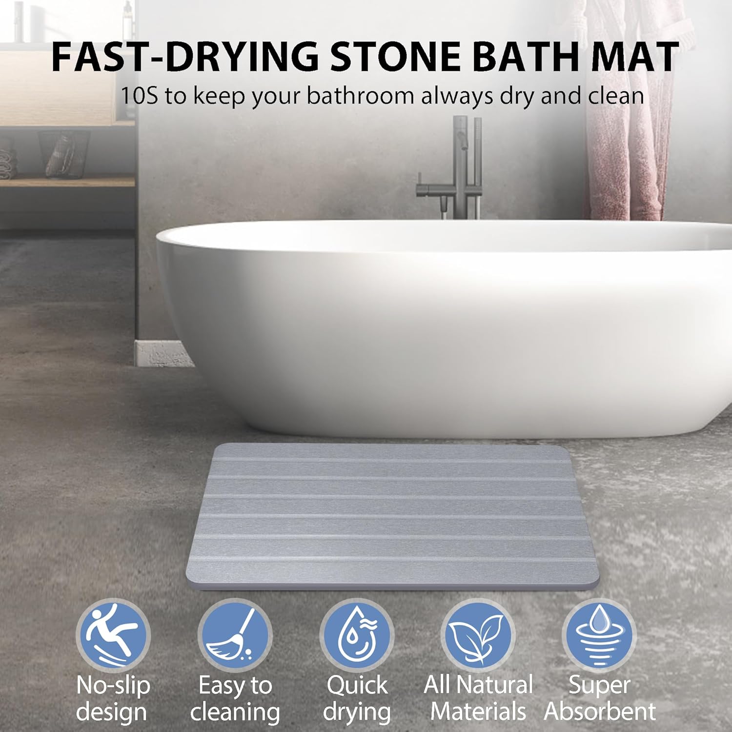 - 【Fast Drying & Super Absorbent】Our stone bath mats are designed with strong water absorption and instant drying capabilities, ensuring your feet dry quickly and maintaining a dry and tidy bathroom space.