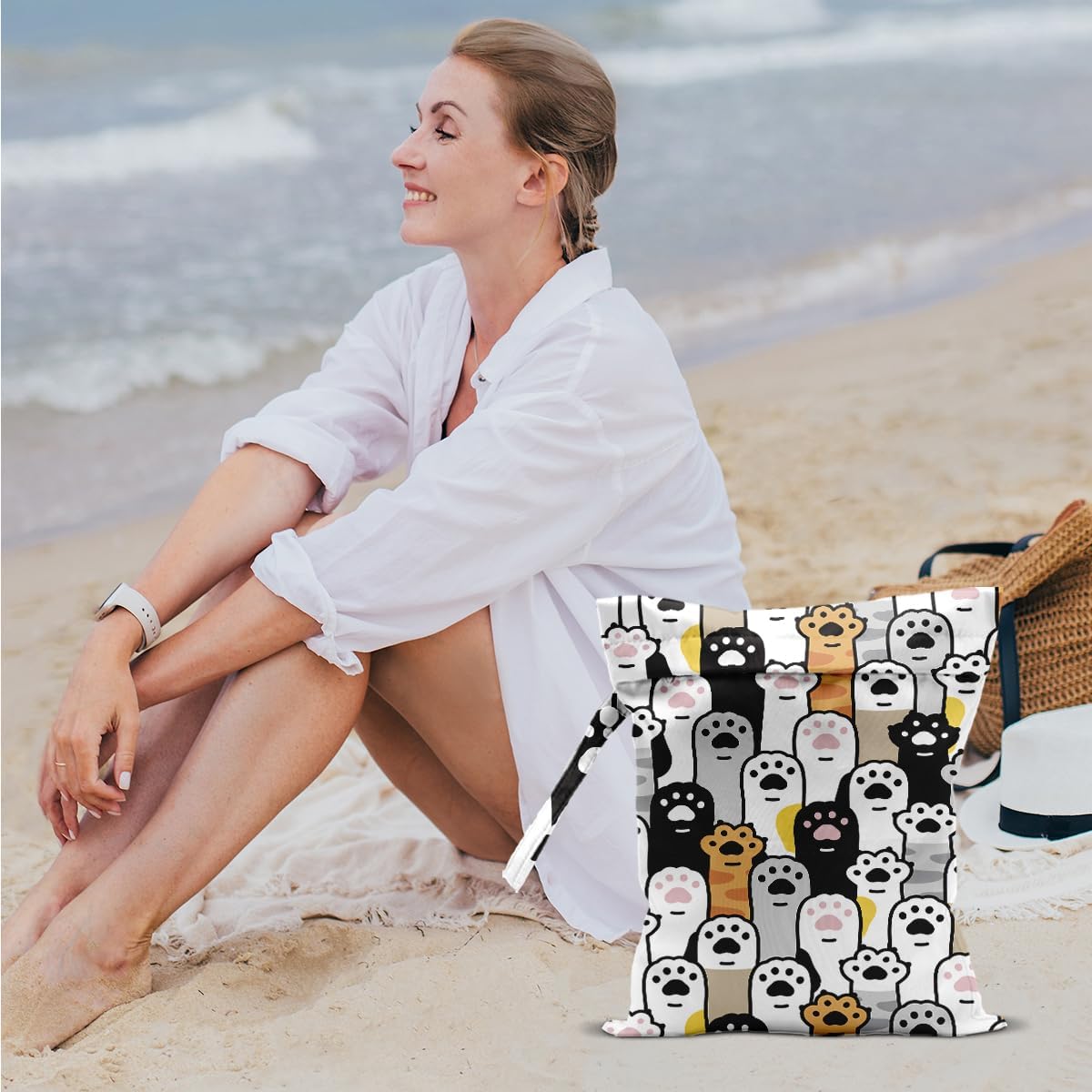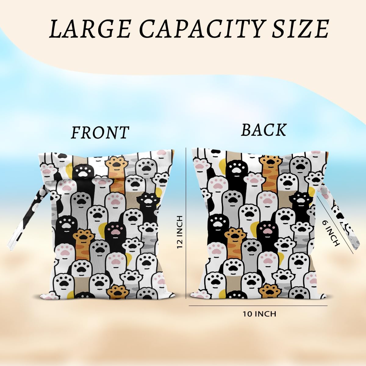 Claws Wet Bags 12x10 Inch, Cats claw Waterproof Reusable Wet Dry Bags, Washable Travel Laundry Bag for Swimsuit Pool Beach Diapers Dirty Yoga Gym Clothes, Cat Gifts for Women Friend Travelers