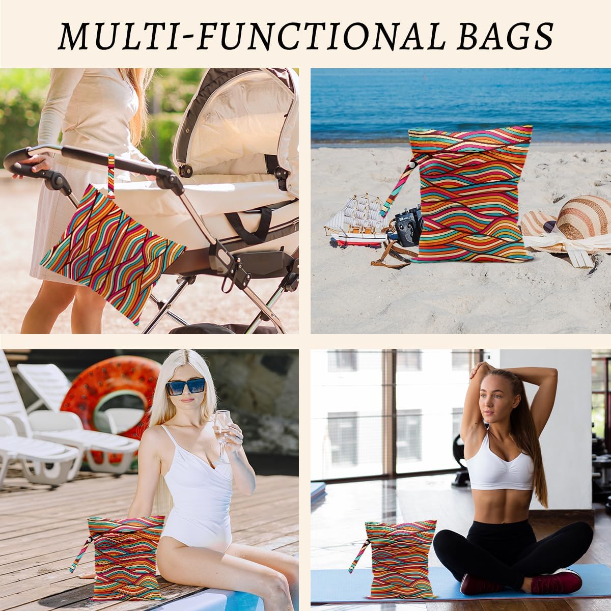 Wave Wet Bags 12x10 Inch, Colorful Wave Waterproof Travel Laundry Bags, Washable Reusable Wet Dry Bag for Swimsuit Pool Beach Diapers Dirty Yoga Gym Clothes, Travel Gifts for Women Friend Travelers