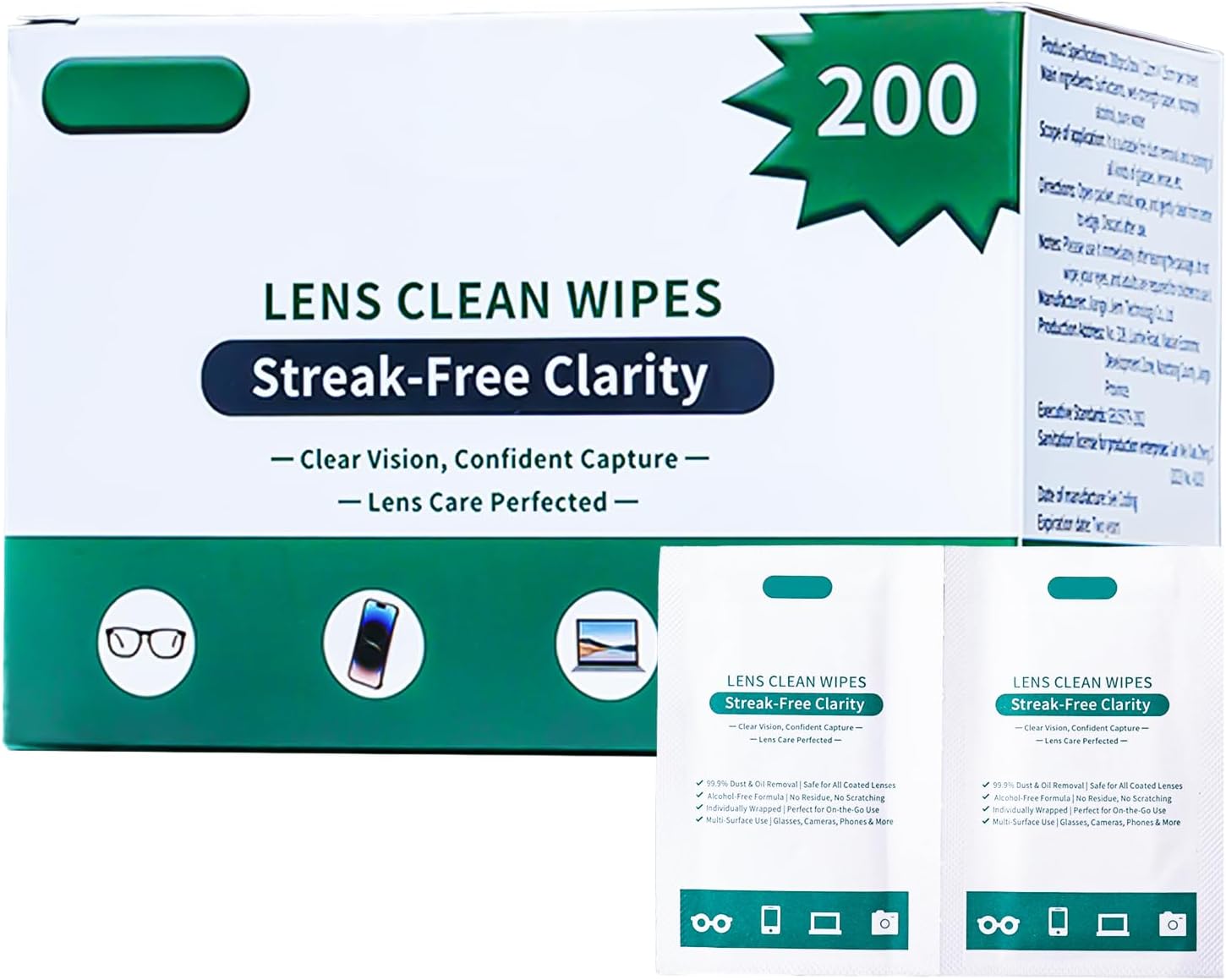 Eye Glasses Cleaner Wipes,Lens Wipes for Glasses/Sunglasses/Eyeglasses,Cleaning Wipes,Lens Wipes Individually Wrapped,Safe for All Lens Surfaces(200PCS)