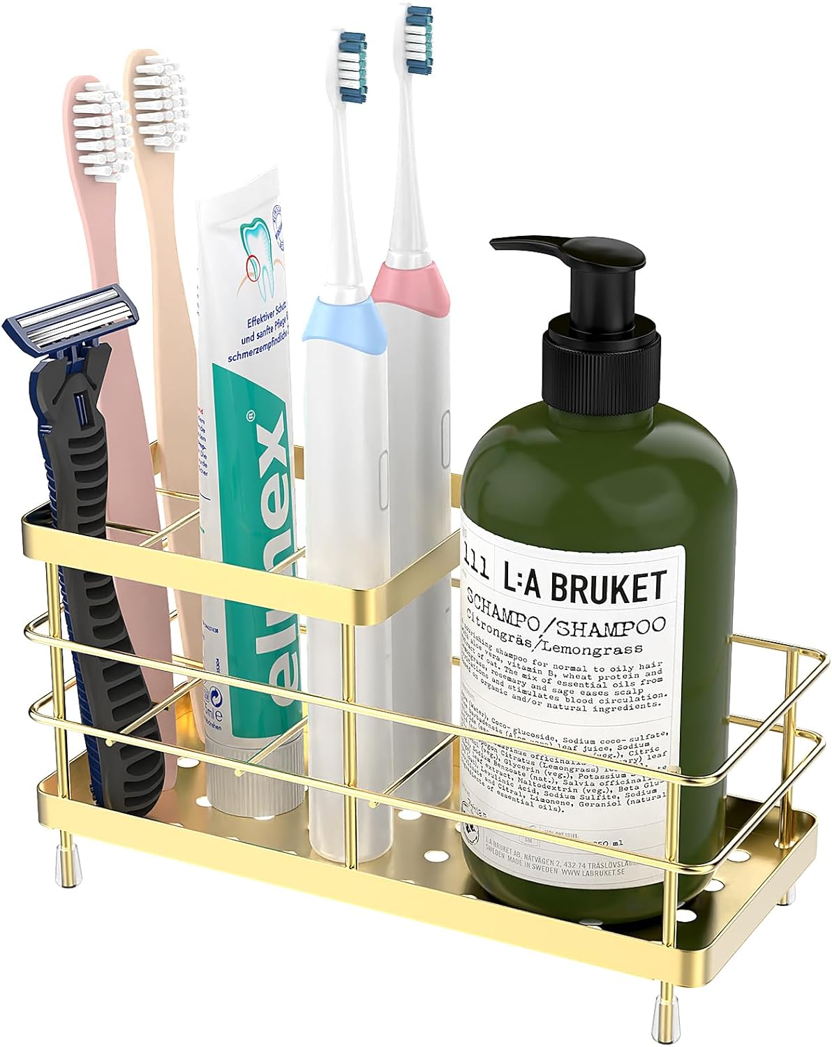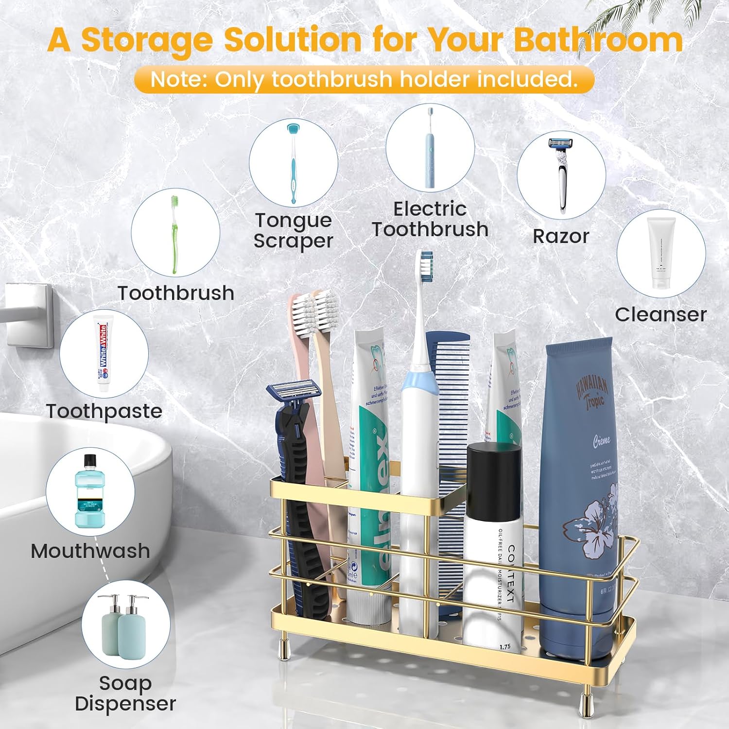 Luxspire Toothbrush Holders, 6 Slots Stainless Steel Tooth Brush Holder with Drainage, Toothbrush Holder for Bathroom Countertop & Kitchen Sink, Bathroom Accessories, Gold