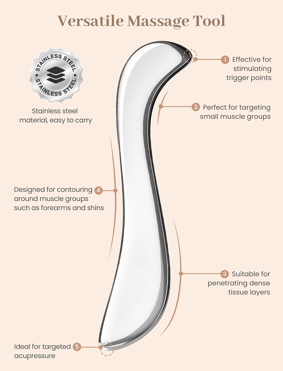 - Self-Soothe & Save: With its precision-edge grinding and reinforced thickness, this handy stainless steel gua sha tool is a great addition to your self-care regimen, allowing you to save money on professional masseuse visits.