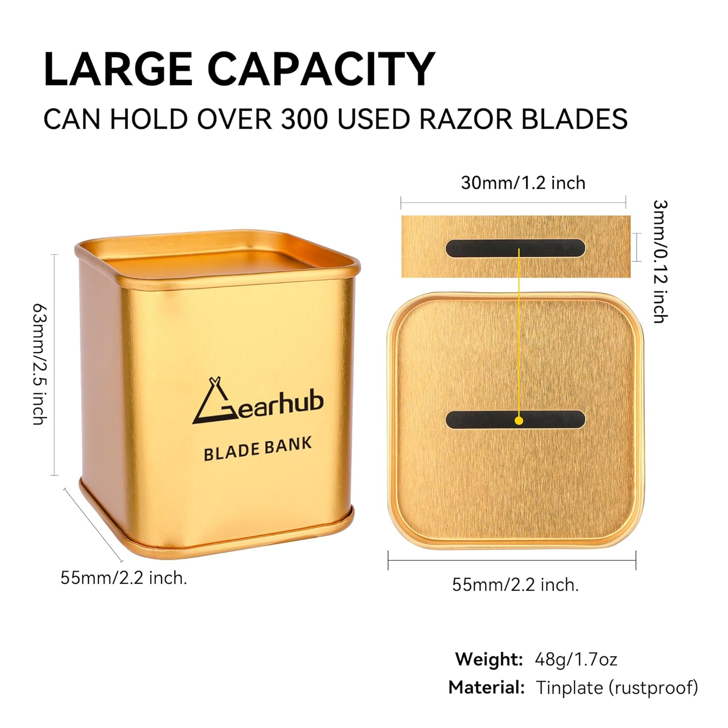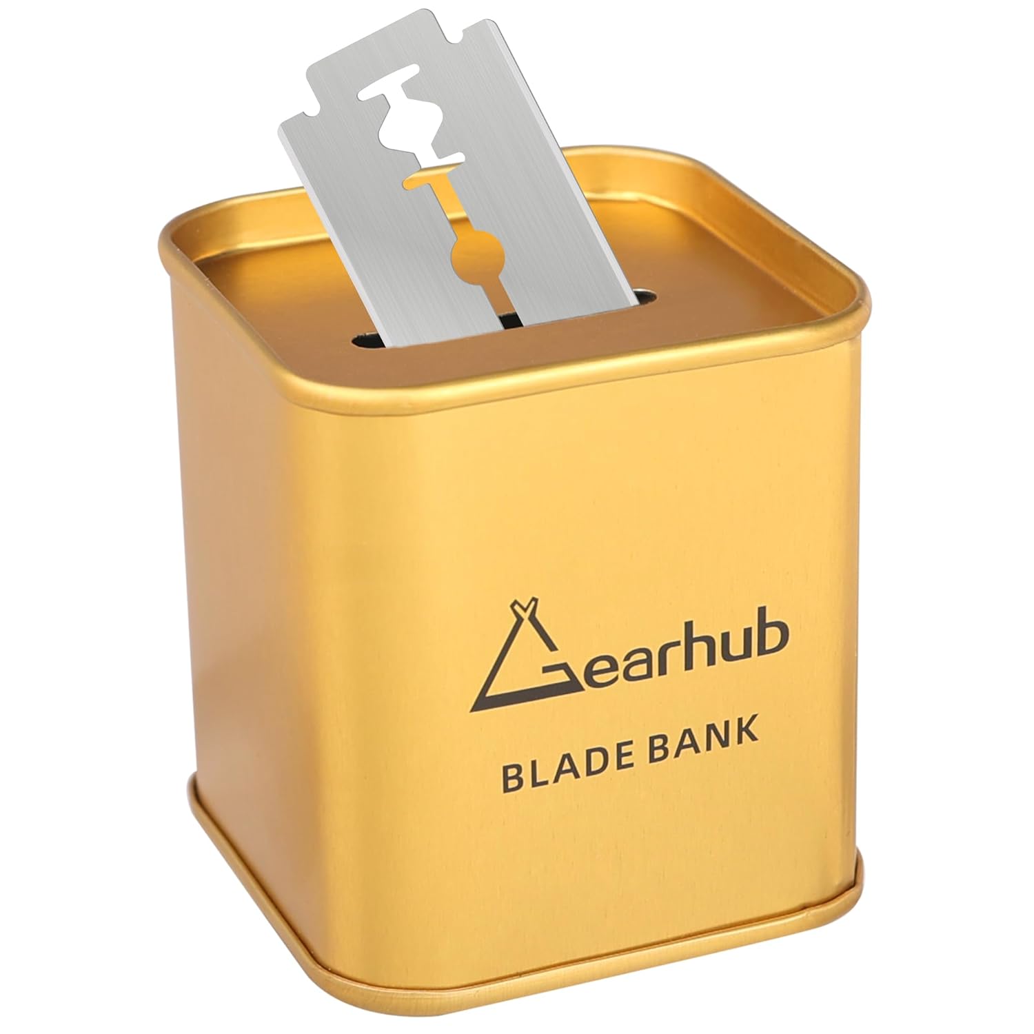 Gearhub Blade Bank Safely Store Used Safety Razor Blades Large Capacity Disposal for Barber Shops & Personal Use Sealed Design Holds 300+ Blades Matte Gold