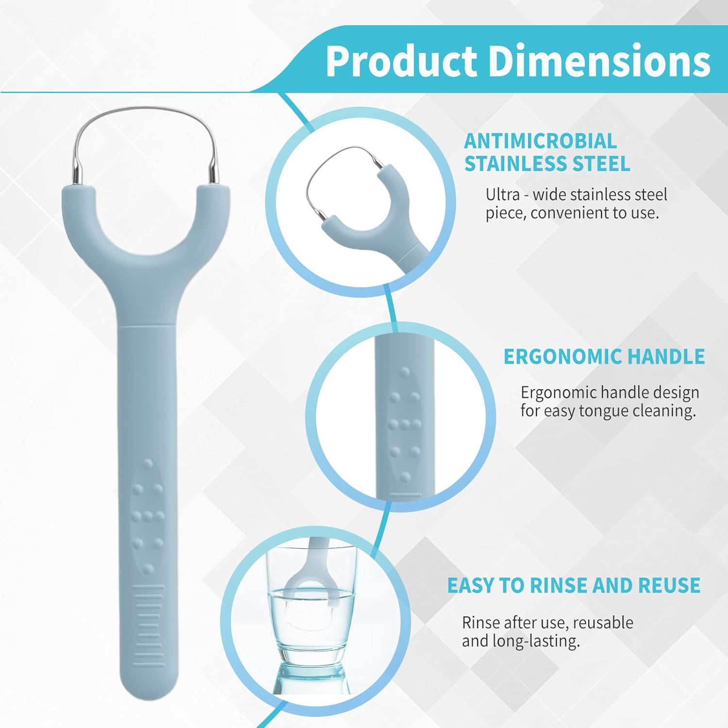 - High-Quality Material & Easy Cleaning: Crafted from medical-grade stainless steel, this tongue Scrubber is highly durable and resistant to rust, ensuring long-term use. It's also easy to maintain—just rinse with water mixed with a cleaning tablet or lemon for a quick, hygienic clean