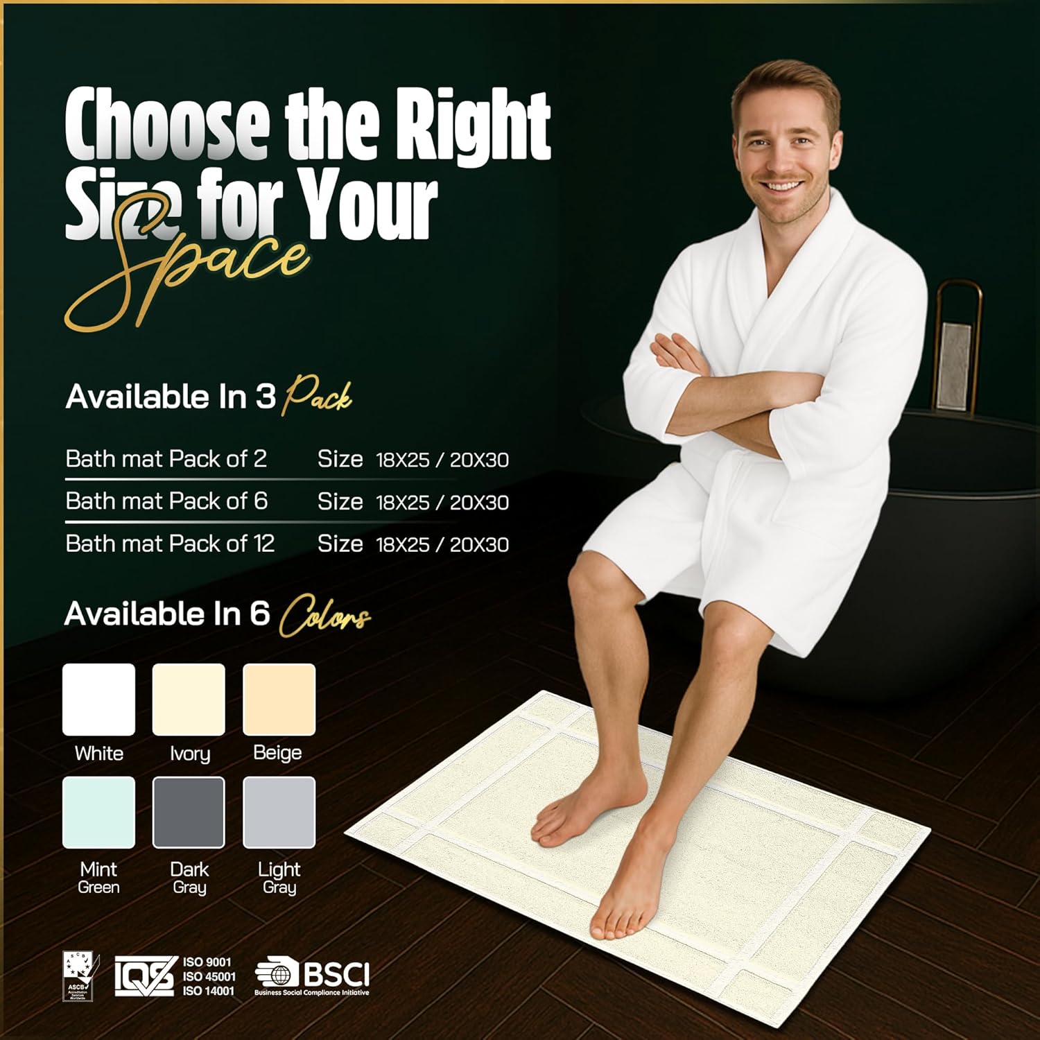 - ✅ 2-Pack Value Set – Large 18x25” Size Includes two generously sized 18x25 inch bathroom mats, ideal for home, guest, or spa use. A must-have for households needing absorbent and stylish cotton bath mats.