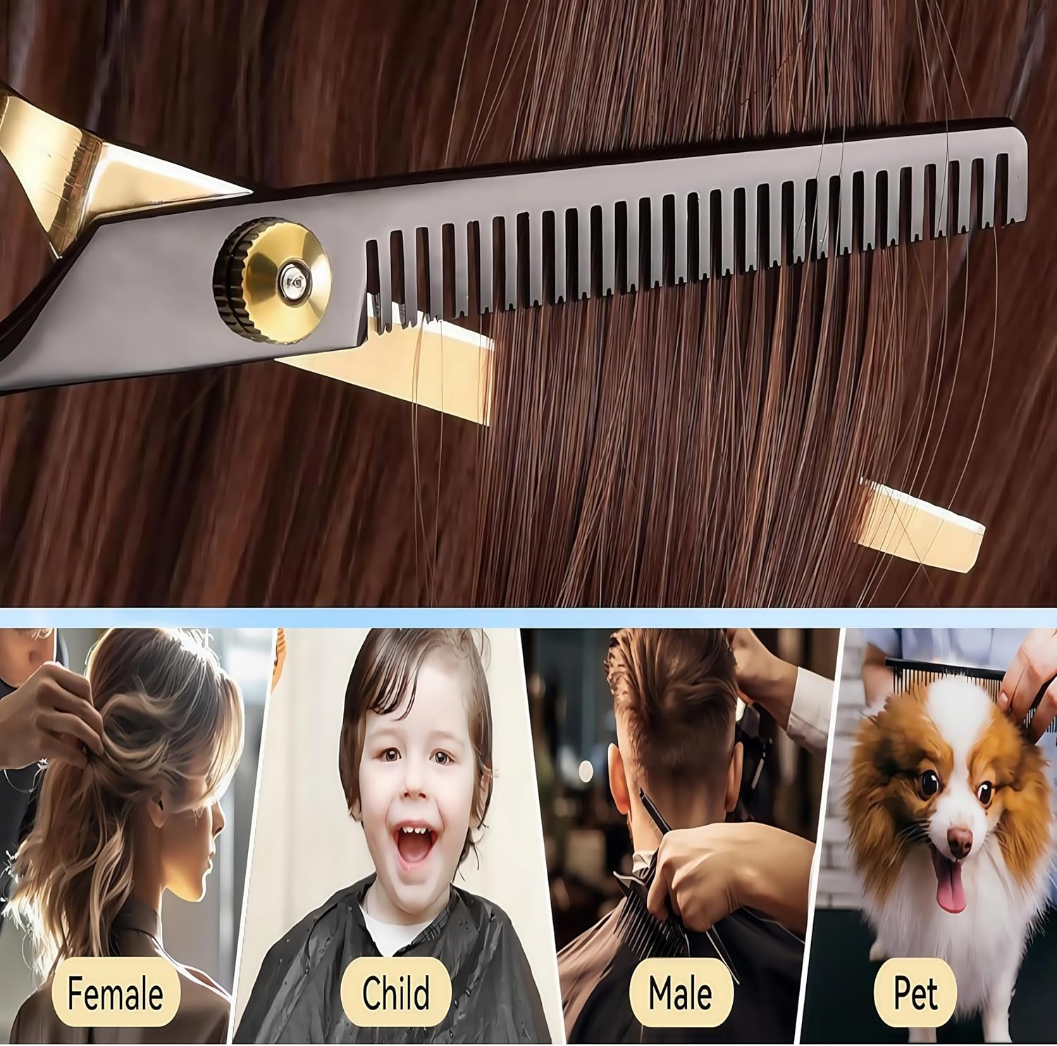 - Professional Hair Cutting kit: Hair scissors Kit made of japanese stainless steel. Our hair cutting kit have sharp blades that do not damage or tear the hair ends. The surface of hair scissors is made with electroplating technology to prevent rust and fading. Suitable for cutting wet or dry hair. We focus on hair scissors, quality, and every customer.