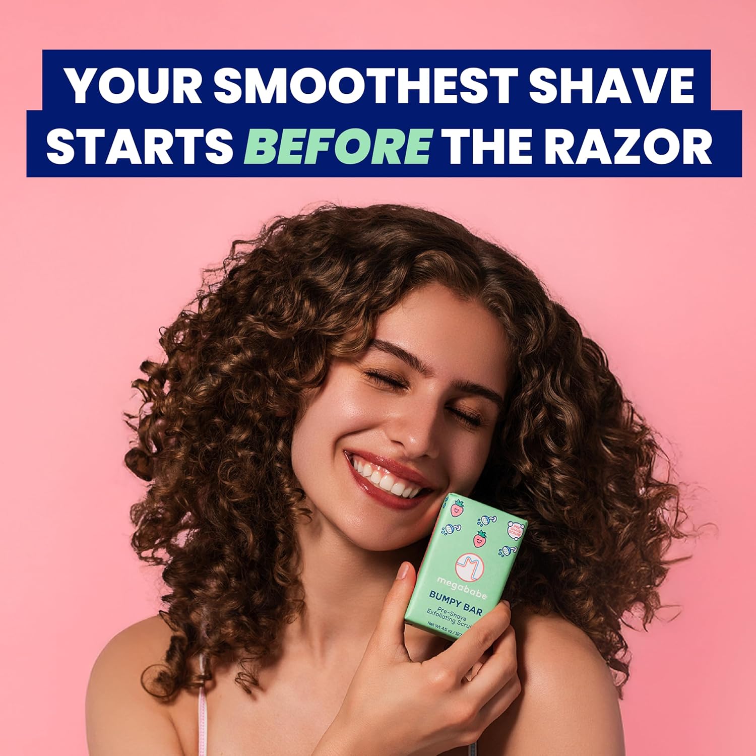 Megababe Bumpy Bar | Pre-Shave Exfoliating Scrub | with Shea Butter, Strawberry Fruit Extract & Ceramides | 4.5 oz