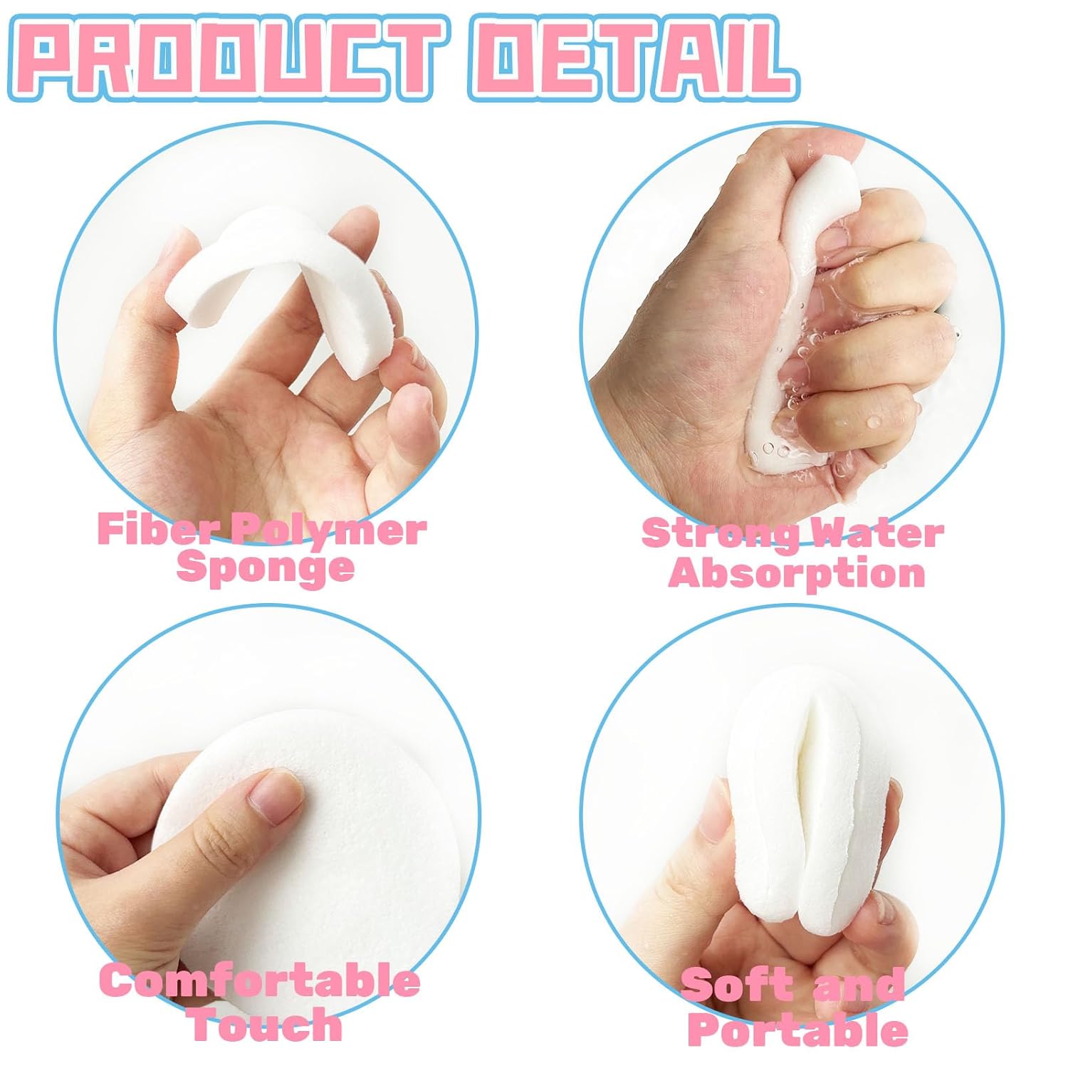 - Quality Materials:Facial cleansing pads are made of high-quality fiber polymer sponge,which is lightweight and soft.They are easy to produce foam,can absorb a lot of liquid,and are very suitable for cleaning and skin care.