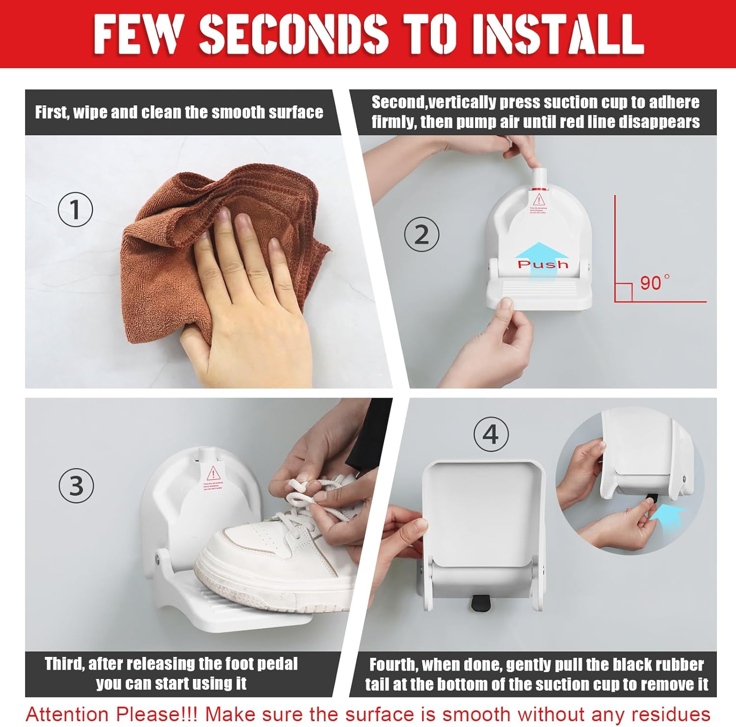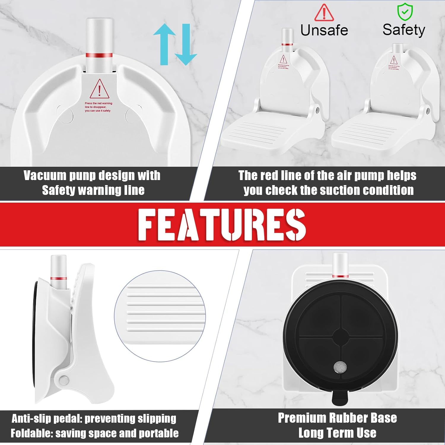 - Vacuum Pump Design with No Drilling: No tools required to install, just suctioned the foot rest to the shower wall by pressing the valve down until the red line is no longer visible. The red warning line would let you know if the suction cup secure enough.
