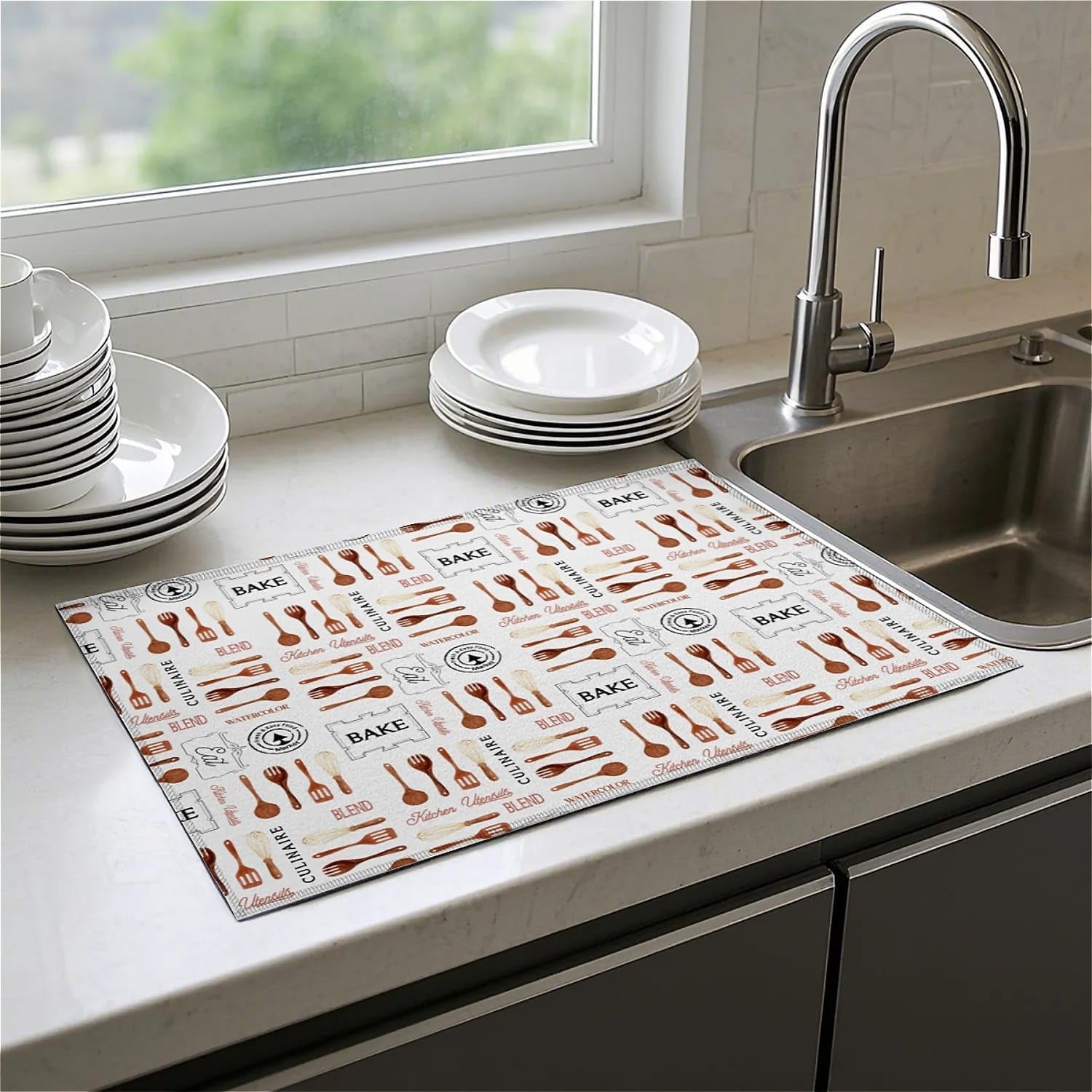 - 【Lovely Home Gift】This beautiful decorative dish drying mat for kitchen countertops will surprise your family and friends, a perfect housewarming gift for a new home or renovation, and a perfect gift for Christmas, Mother's Day, birthdays, Thanksgiving, and various other occasions