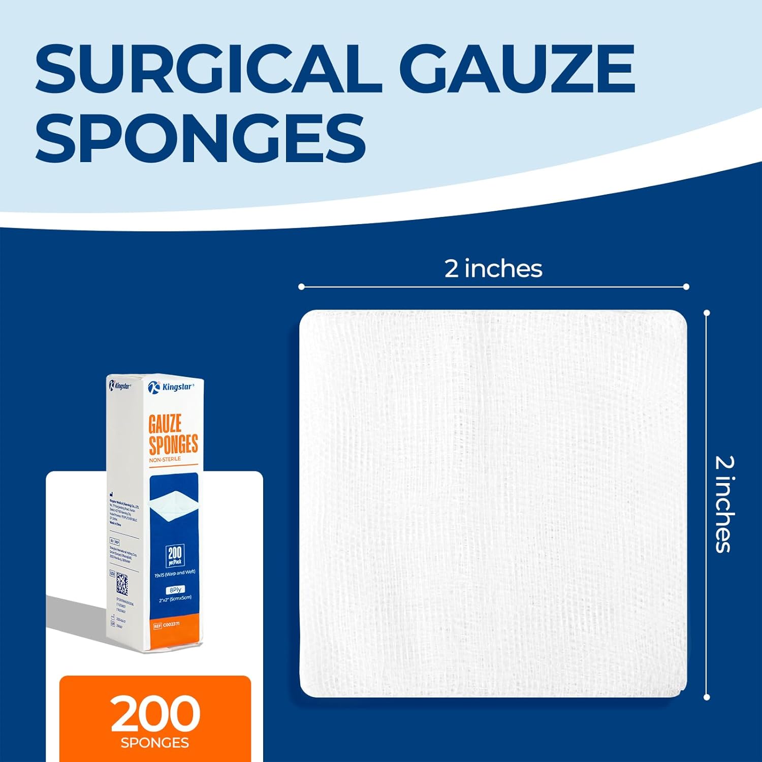 - Highly Absorbent: The gauze sponges 2x2 inch remain intact without tearing even when saturated. Each pack contains 200 pieces, with an 8-ply structure and a 19×15 thread per inch, producing less lint compared to normal gauze