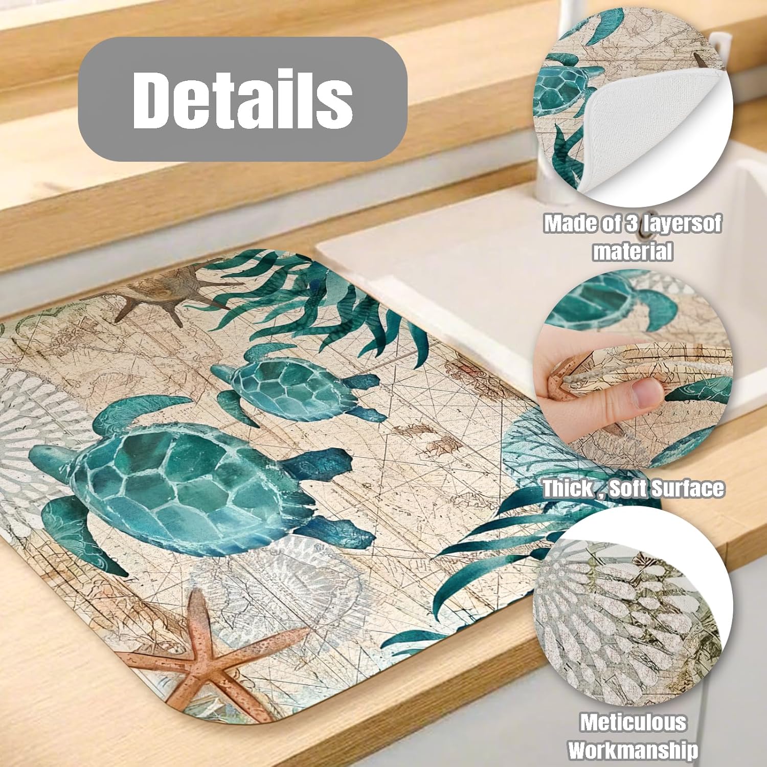 Dish Drying Mat for Kitchen Counter Large 18" x 24" Seaturtle Absorbent Microfiber Dishes Drainer Rack Mats Pad Reusable Washable