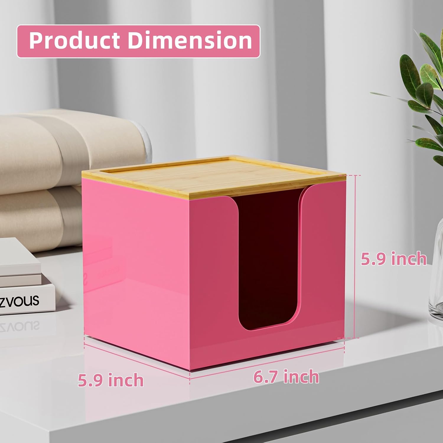 VITVITI Disposable Face Towel Holder Box, Acrylic Facial Towel Container for XL Clean Skin Club, Large Disposable Face Towels Storage with Bamboo Lid, for Bathroom, Vanity Makeup, Pink