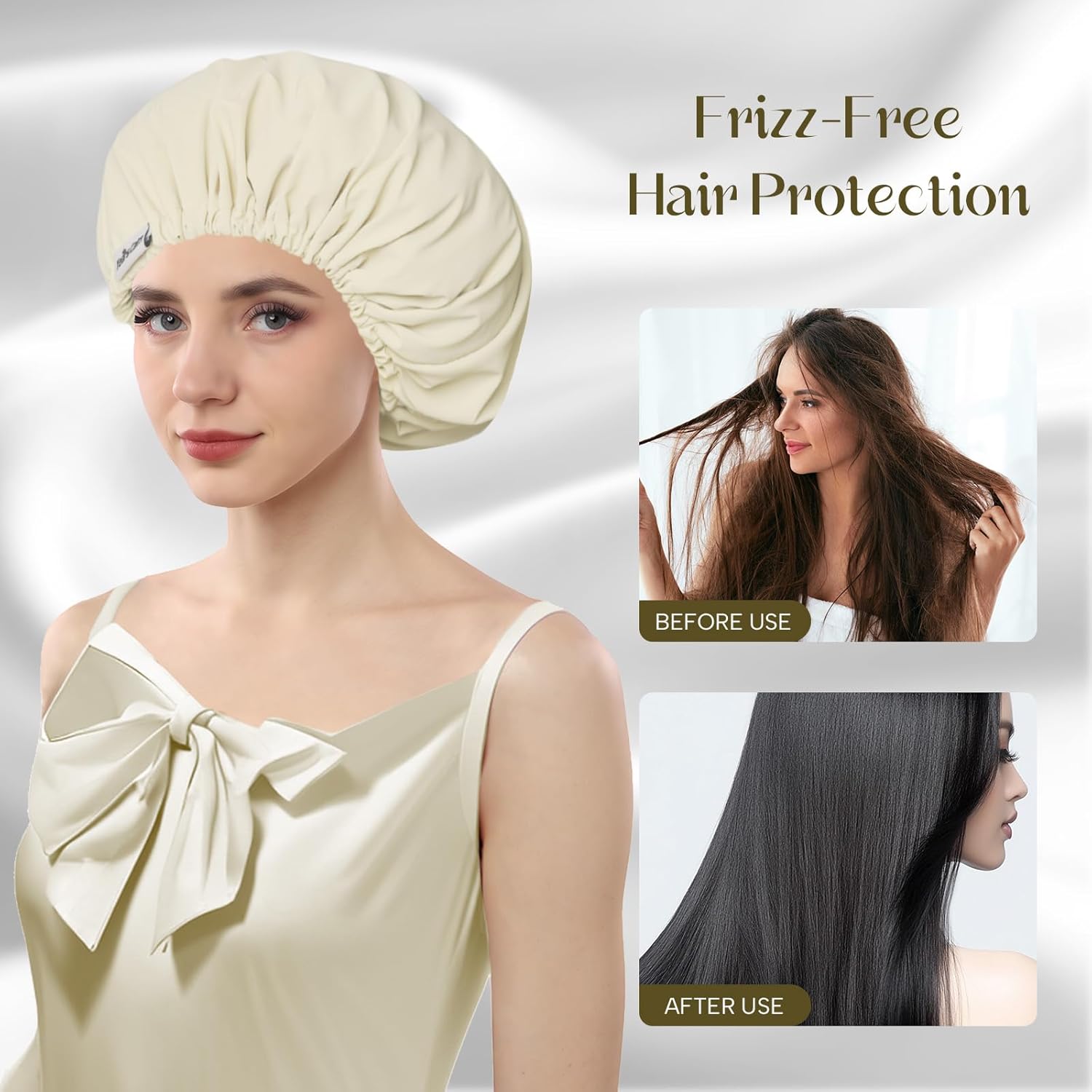 - Luxurious, Functional Design – Made with a double-layer construction: the outer layer features soft, waterproof ice velvet. At the same time, the inner lining is Light luxury satin to help protect your hair from frizz and breakage. Fully waterproof and perfect for all hair types