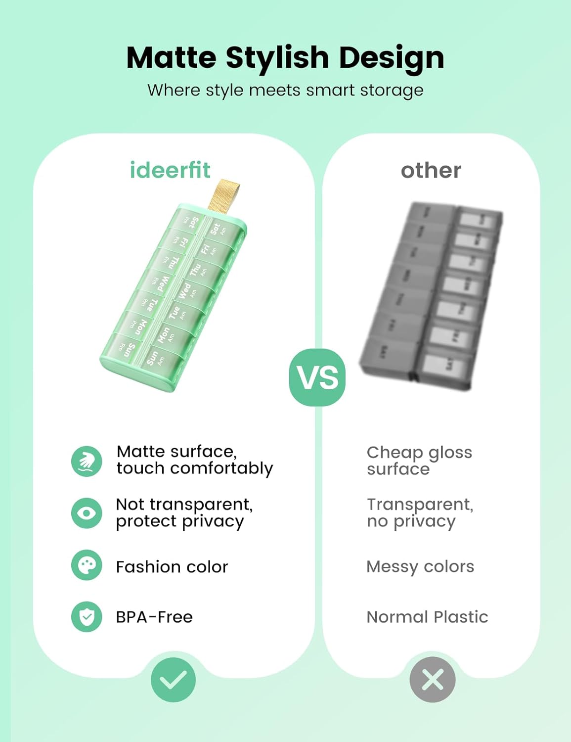 - 【Matte Privacy Design】 Crafted with a subtle matte finish, this pill case offers a modern look and opaque cover for discretion. The surface resists fingerprints, feels comfortable, and enhances the style of your weekly pill organizer.