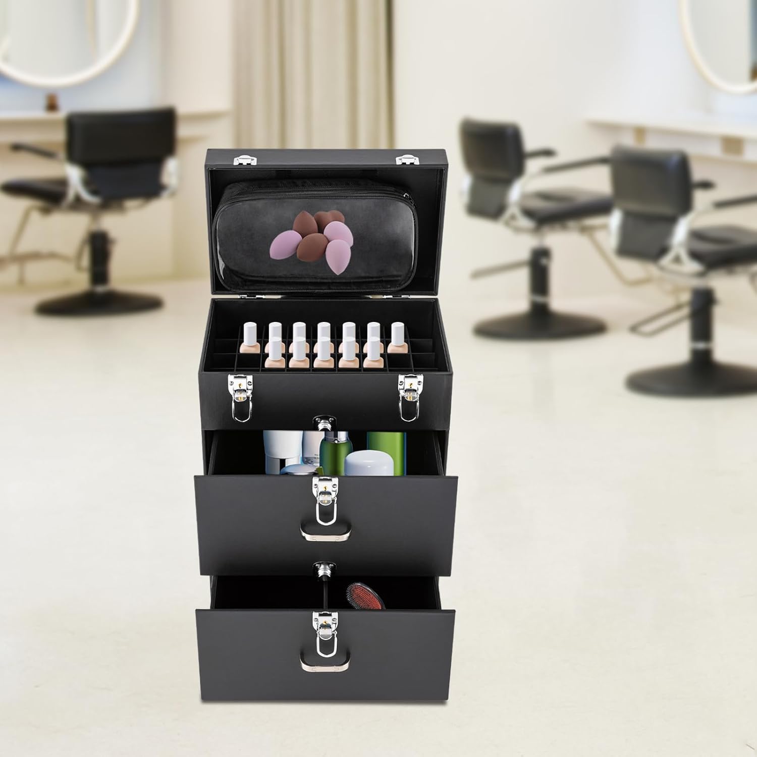- CONVENIENT STORAGE:Multi-layer large capacity inside the trolley case, each layer is built for storing different tools. You can use it to store your cosmetics, hair dryer, barber tools, etc. to keep your tools more organized.