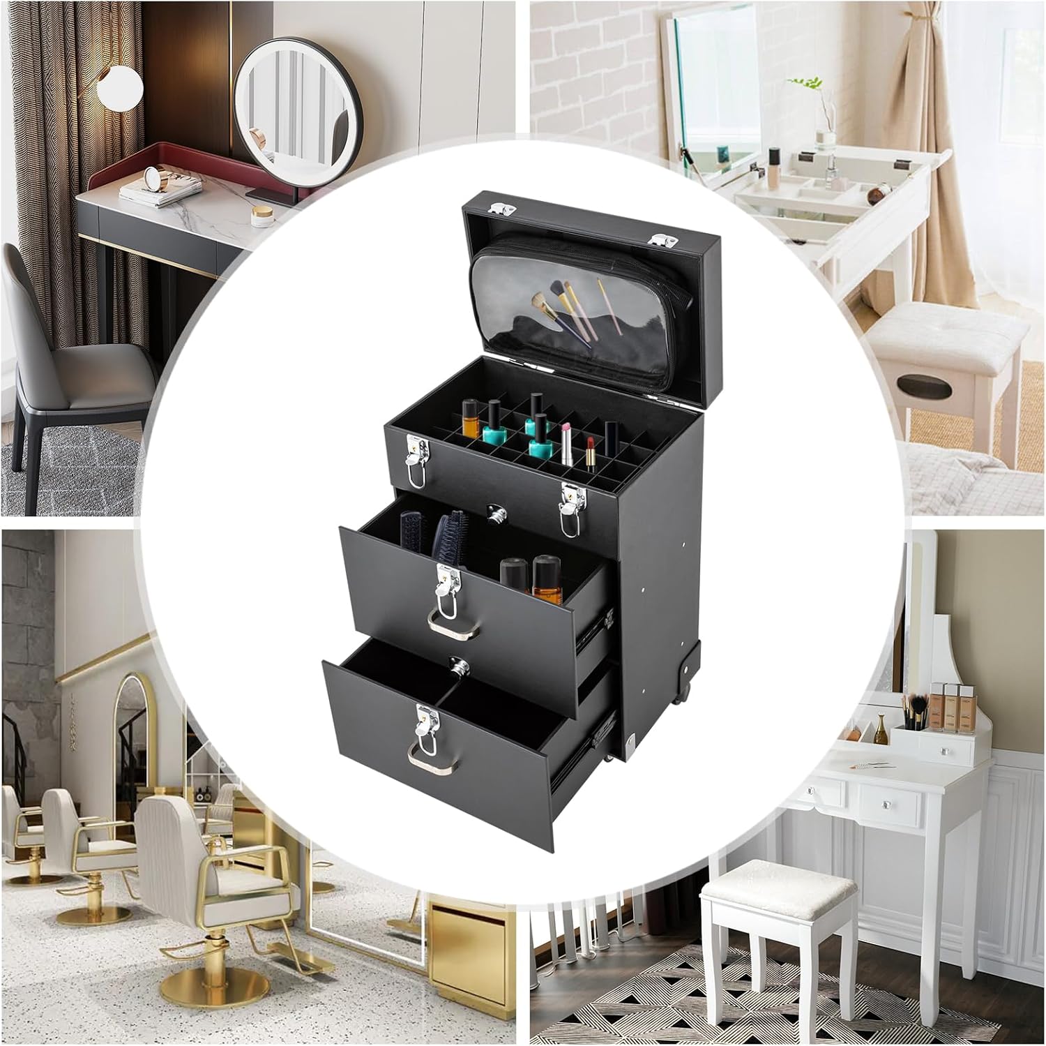 - WIDELY USED:This trolley case can be used for home and personal use, also suitable for barber stores, beauty stores, nail salons and other commercial places. Suitable for professional make-up artists, nail technicians, hair stylists, cosmetologists, nail students and people with piles of cosmetics.