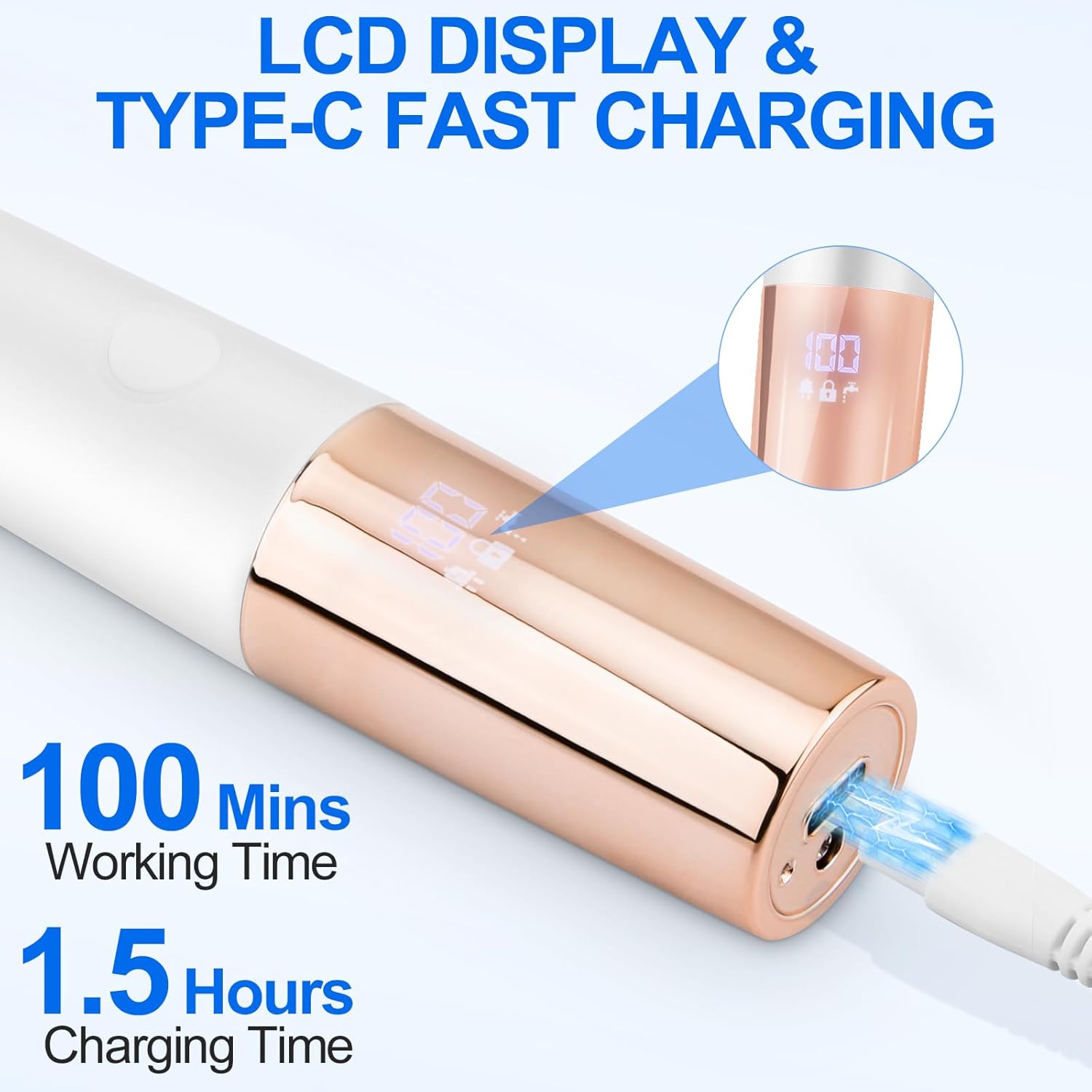 - 💧【Waterproof & LCD Display】Designed with IPX7 waterproof technology, this Electric Razor for Women supports both wet and dry use. The detachable shaver head makes cleaning effortless, while the LCD display tracks battery life. Ideal as a Body Shaver, Electric Bikini Trimmer, or Hair Trimmer for everyday use.