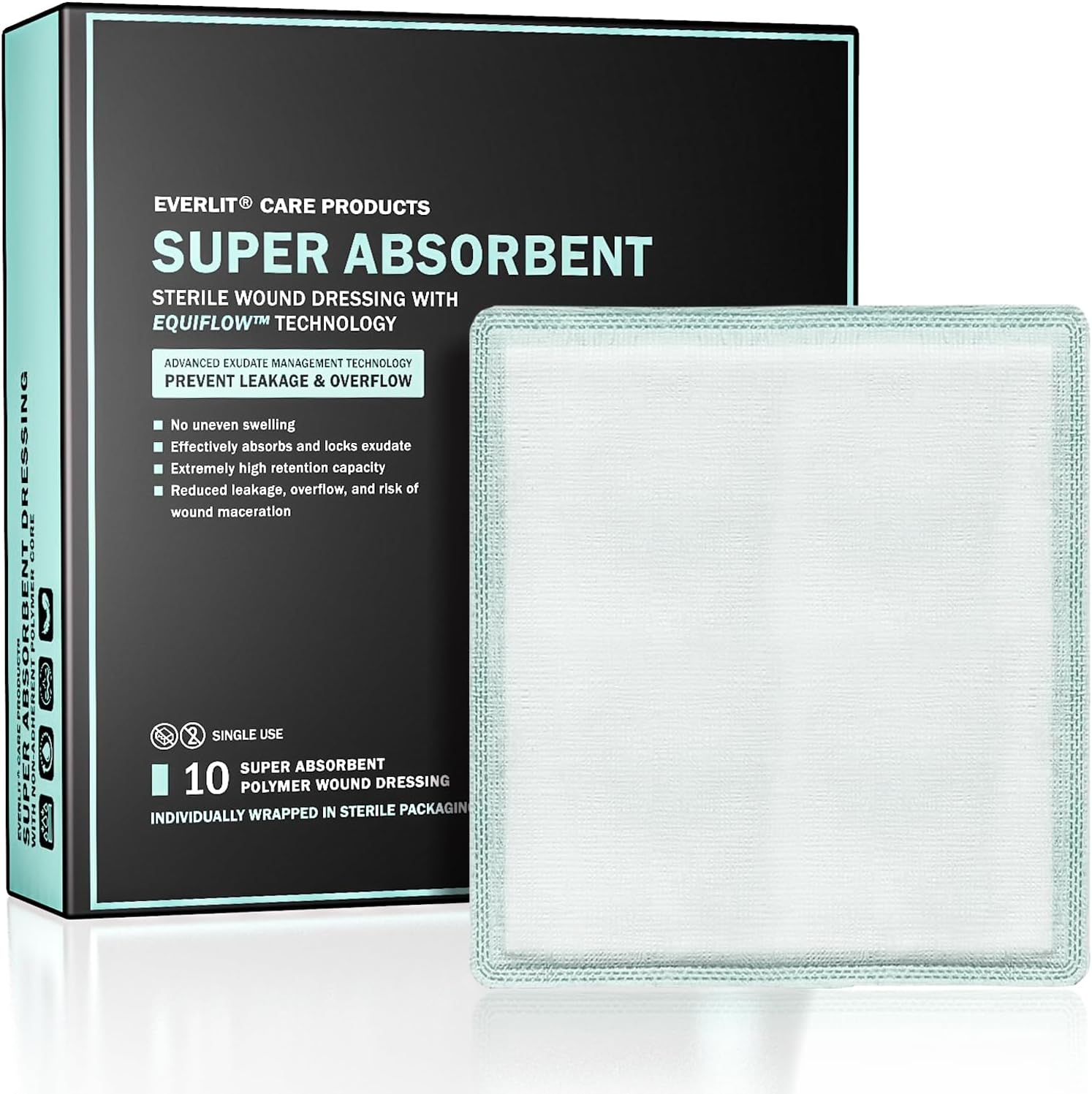 - ✅EXCEPTIONAL ABSORPTION CAPACITY WITH SAP CORE: Engineered to manage highly exudative wounds, this super absorbent dressing efficiently absorbs and retains up to 25 times its weight in fluid. Ideal for managing acute wounds, chronic wounds, or surgical incisions that produce high levels of exudate, it ensures optimal moisture management, keeping the wound environment properly balanced to promote faster healing.