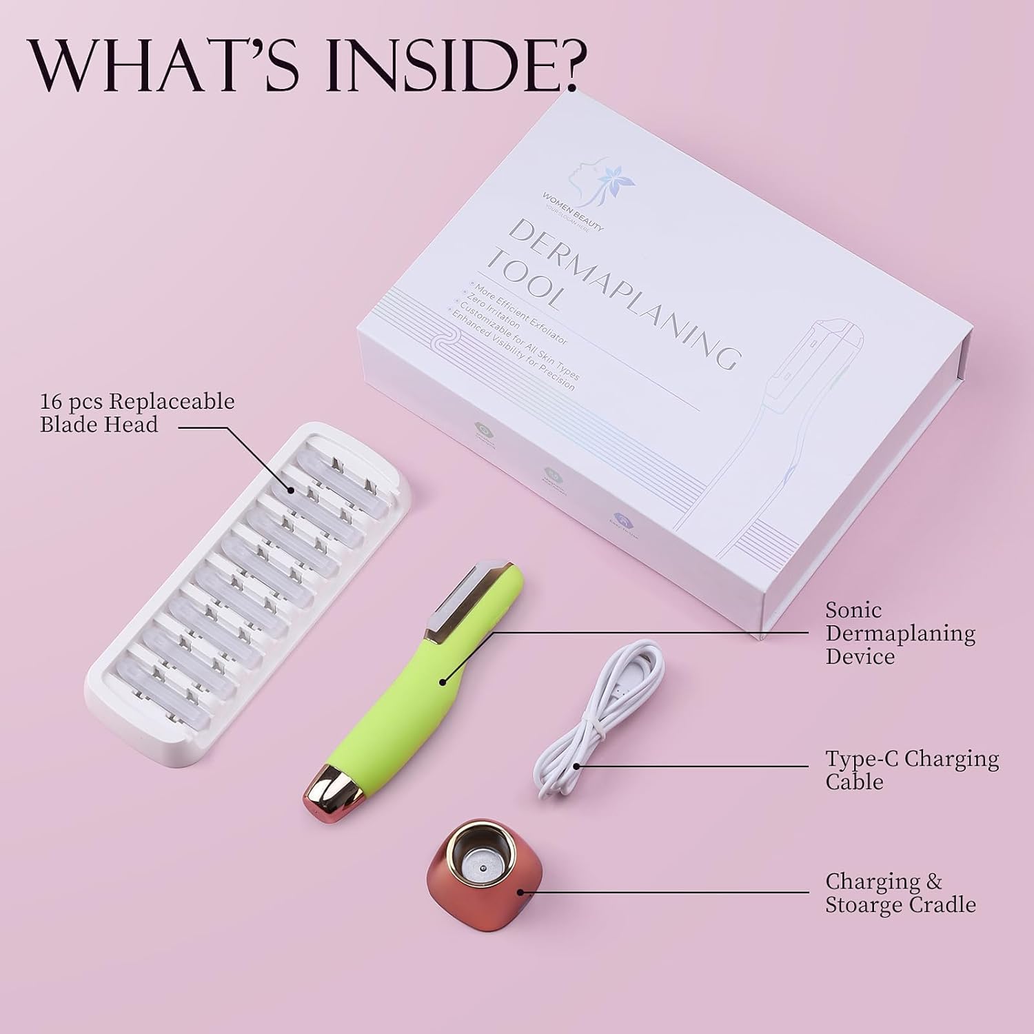 Sonic Dermaplane Razor for Women Face, Dermaplaning Tool for Face, Sonic Edge Technology, Facial Hair Removal for Women, Peach Fuzz with 8 Replaceable Blades(Green)