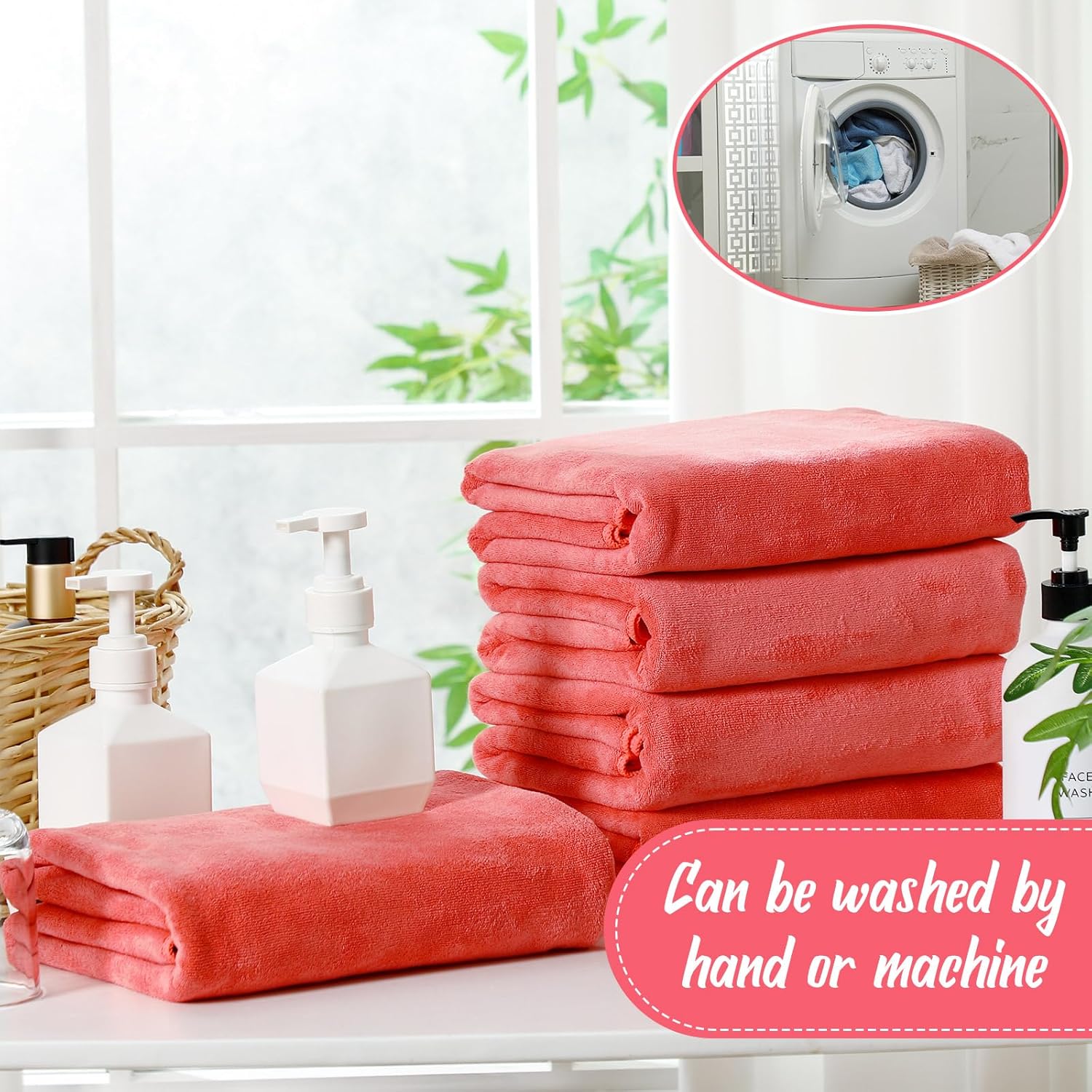 16 Pack Microfiber Bath Towels Bulk 27'' x 60'' Oversized Size Bath Towel Highly Absorbent Extra Large Soft Drying for Shower Beach Salon Winter Sport Spa Gym (Simple,Pink)