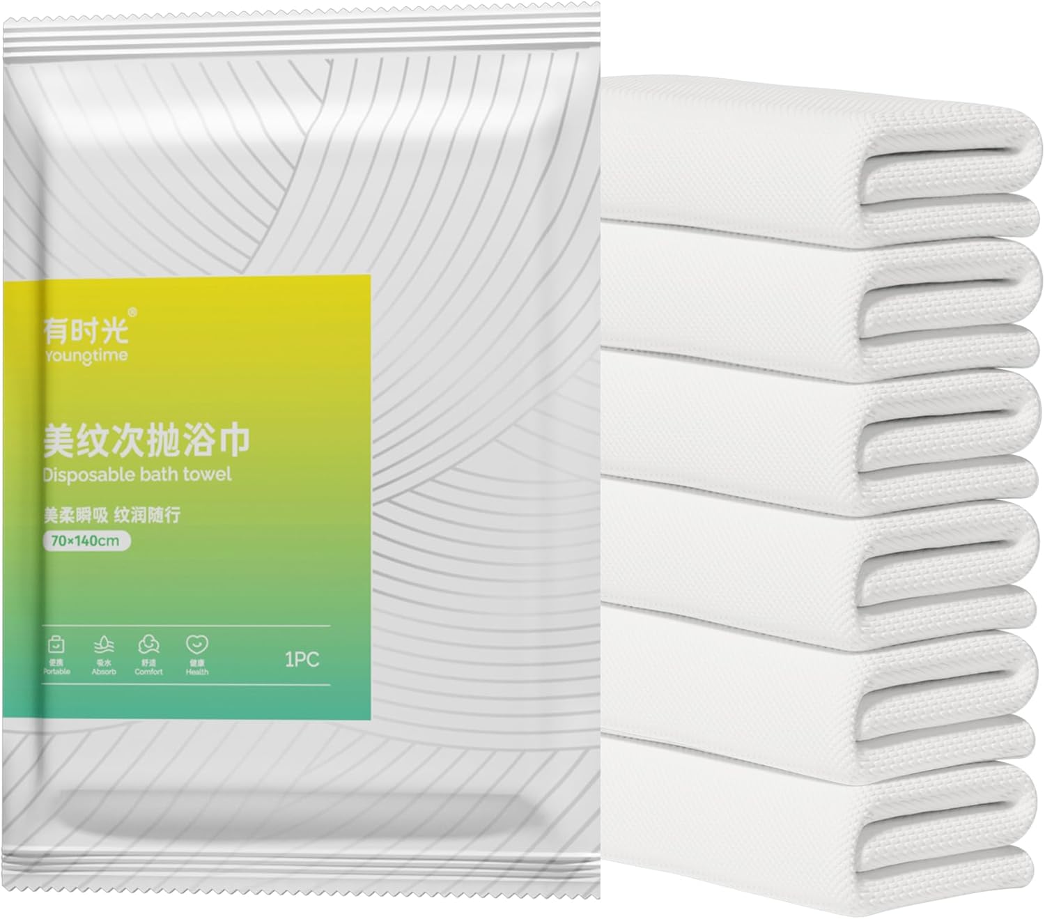 YOUNGTIME Disposable Bath Towels 55" x 27.5",Quick Dry Disposable Body Towel,Thickened Portable Towels Set for Travel Camping,Pet Towels,6 Pack