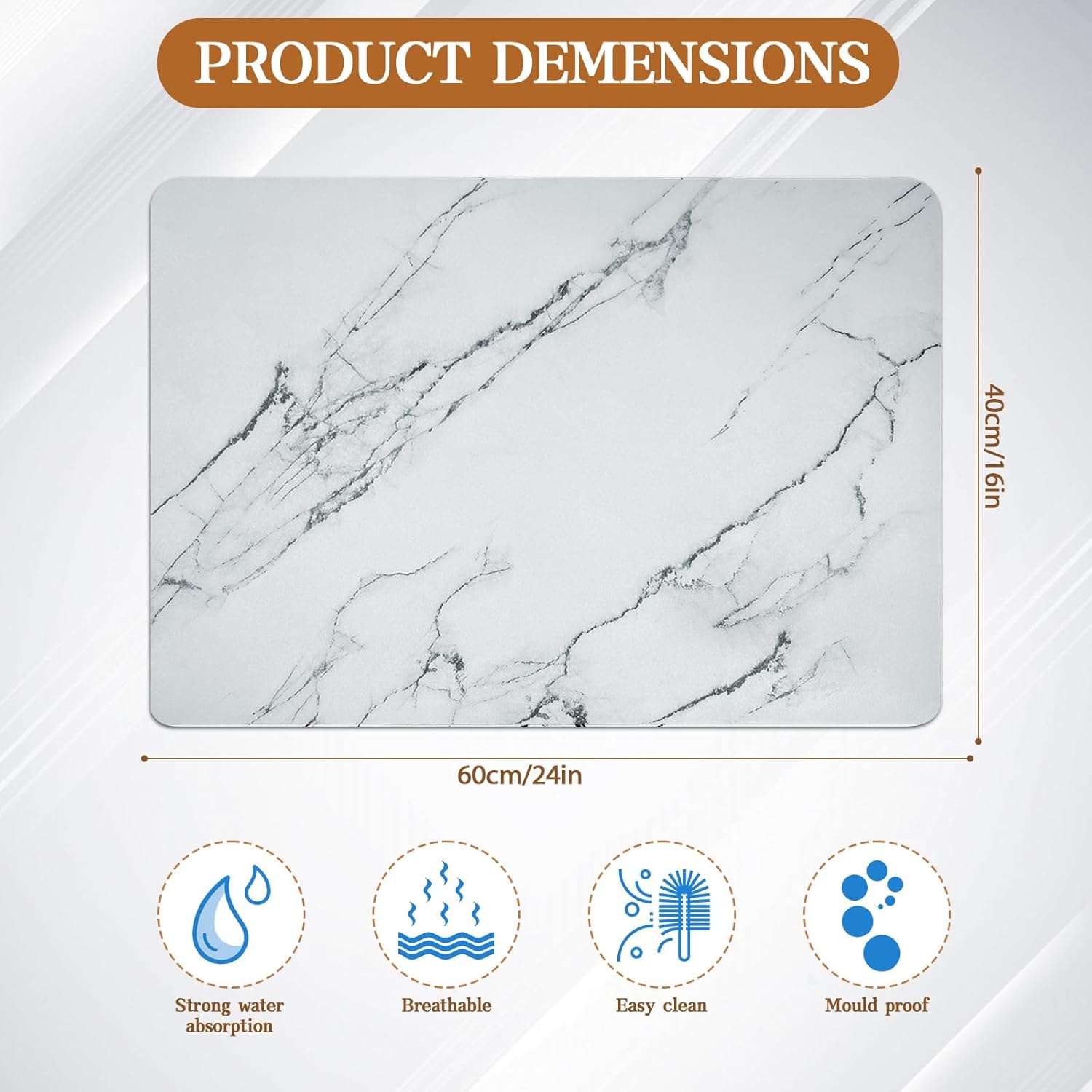- 【Large Dish Drying Mat】The dimensions of the XL large dish drying mats are 24 x 16 inches, can hold pots, pans, and more dishes. The unique marble pattern of the drying mat is very stylish and durable. Drying mats are perfect for under the sink, bathroom countertops.