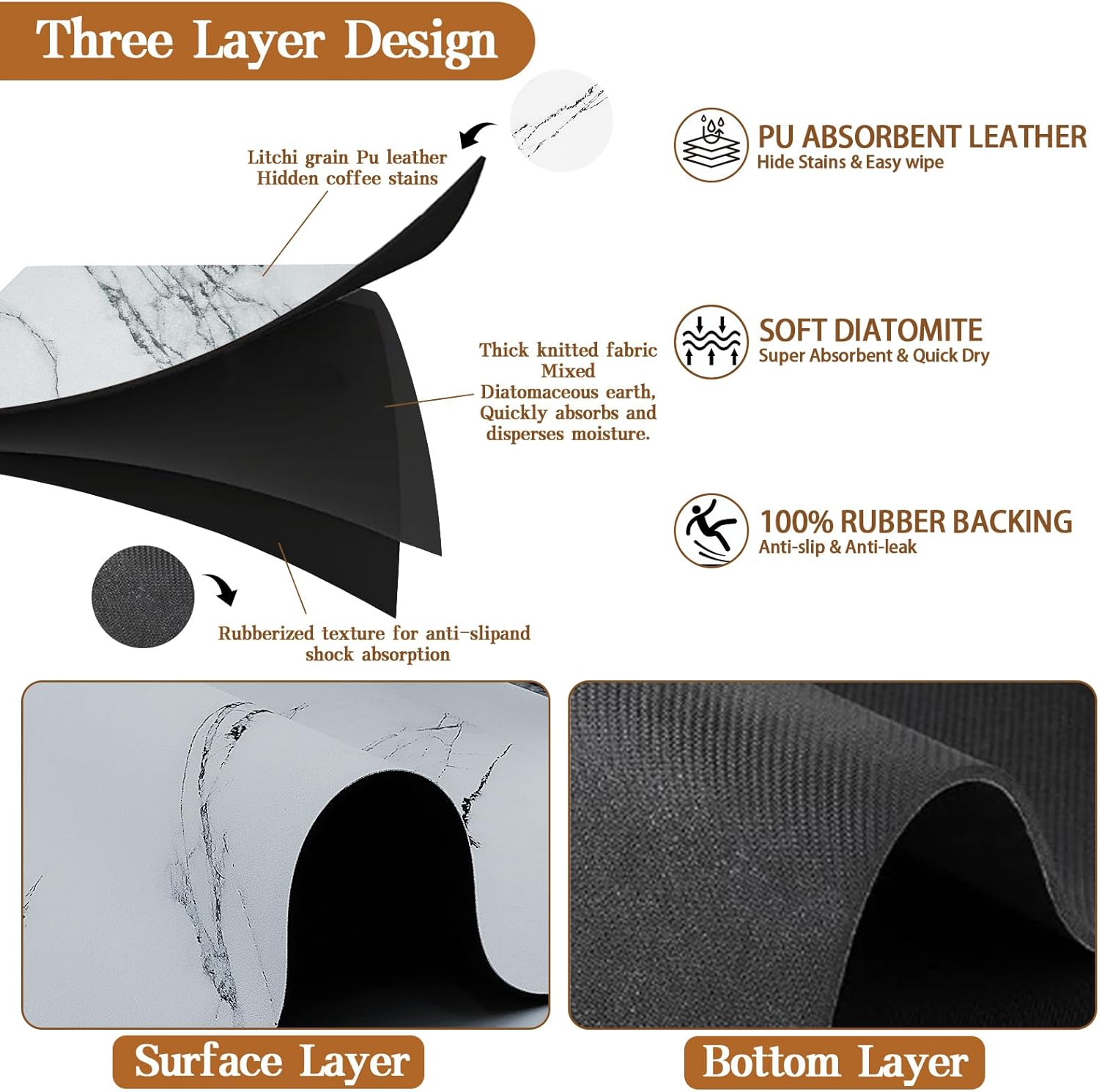 - 【Quick Water Absorption Drying Mat】HCYDTOPU microfiber tableware dish drying mats for kitchen counter are made of high-absorbent nanomaterials. The special PU surface of the kitchen drying mat can well hide coffee stains, milk stains and any other dark messy stains, keeping your countertops dry and clean. In addition, the dish mat is thick enough to better protect countertops, tableware and glassware from damage.