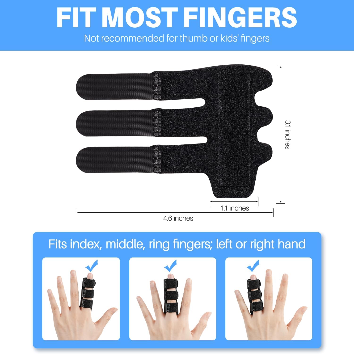 - 3-Strap Design: With three straps for enhanced stability and breathable comfort, this middle finger splint provides a snug fit for various finger sizes. It supports the finger while allowing limited movement and fits adult index, middle, and ring fingers on the left or right hand