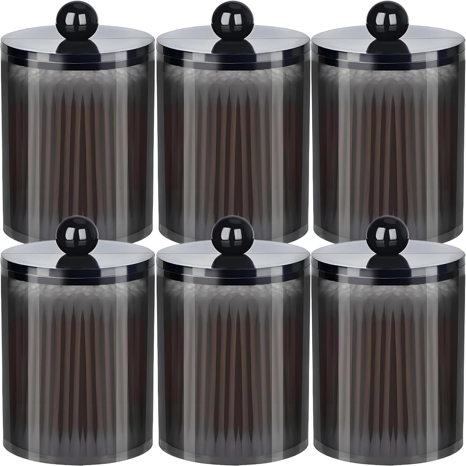 AXX Qtip Dispenser Apothecary Jars Bathroom - Qtip Holder Storage Canister Clear Plastic Jar for Cotton Swab,Q-Tips,Cotton Rounds (Black 6Pcs)