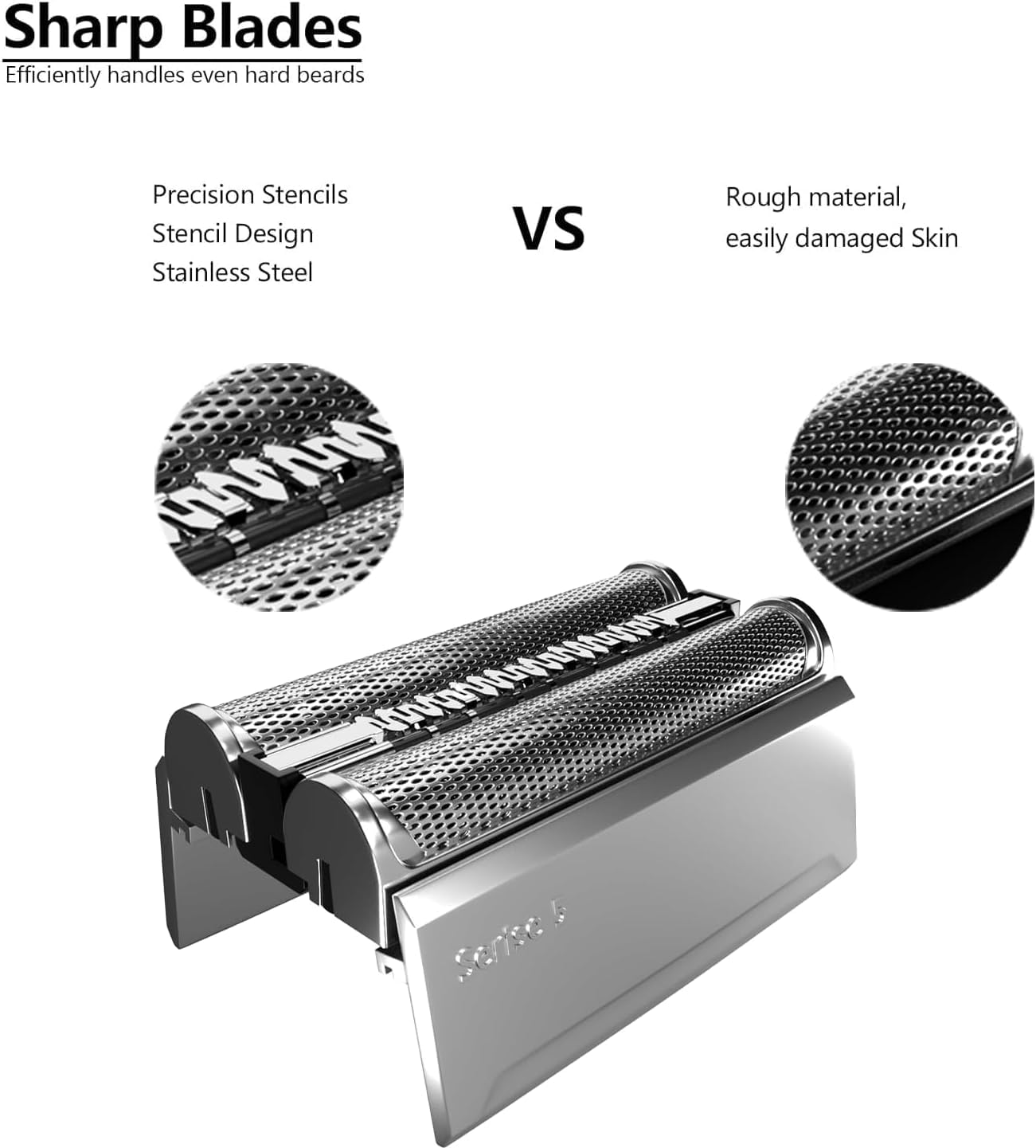 - PERFECT DESIGN - 52S replacement head for braun series 5 electric shaver is designed with stainless steel mesh, which can perfectly fit your skin and work without harming your skin, so that you can have a good using experience.