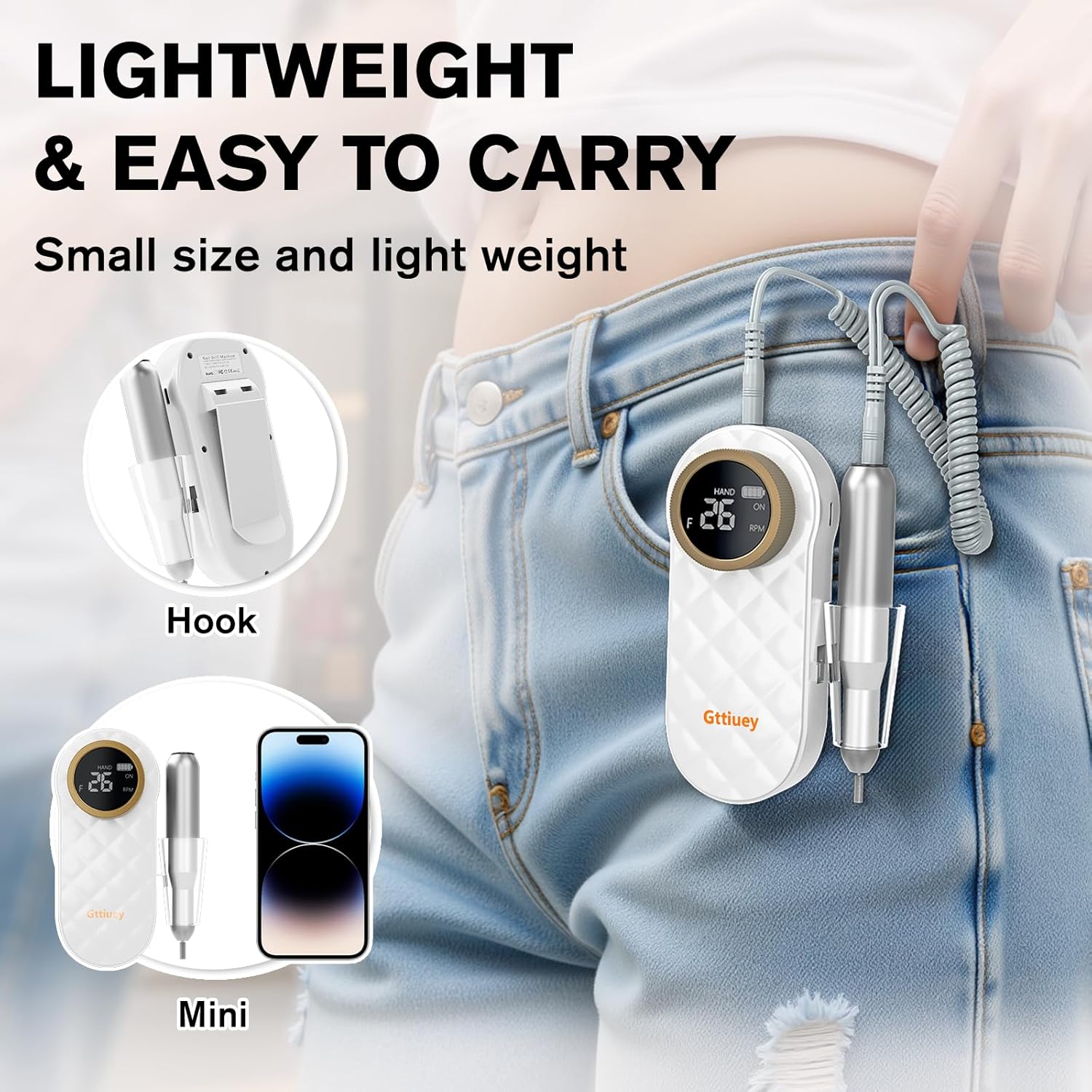 - Adjustable Speed up to 35,000RPM: Equipped with high-quality bearings, this electric nail drill allows you to smoothly operate at speeds ranging from 0 to 35,000 RPM by simply rotating the speed control knob. This makes it an ideal nail drill machine for both experienced salon technicians and beginners starting their nail care journey at home or in the salon.