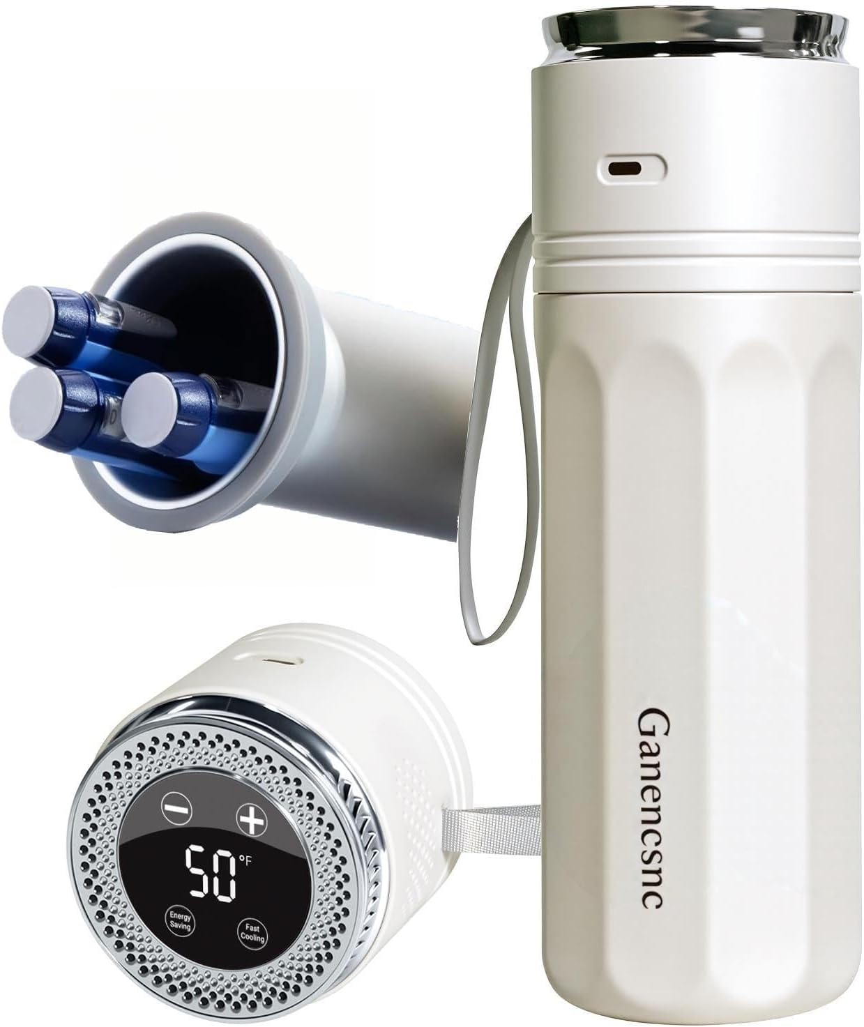 - User Guide.1. For Long Trips.Step ①: Putting the ice crystal stick frozen for 6-8 hours into the cup can effectively cool it for 8-10 hours.Step ②: When the Ice crystal stick effect diminishes, remove it from the cup. Connect the cup to a fully charged 10,000mAh power bank provides 4-6 hours of battery life, while a 20,000mAh power bank offers 8-10 hours. The actual battery life increases as the temperature drops, and vice versa.Step ③: After your power bank drains, fill the Emergency Ice Bucket with ice and It will provide an additional 6-8 hours of cooling.2. For Daily Use:connect the cup to any power source:Wall outlet adapter、Car charger、Computer USB port、Portable power bank。