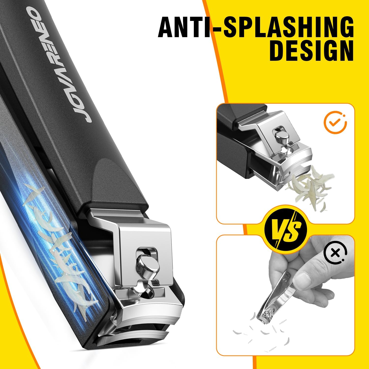 - 【Anti-Splash Built-in Catcher】 Designed as nail clippers with catcher, these anti-splash clippers collect clippings for a mess free nail trimming experience. Keep your space clean while protecting your eyes from flying debris.