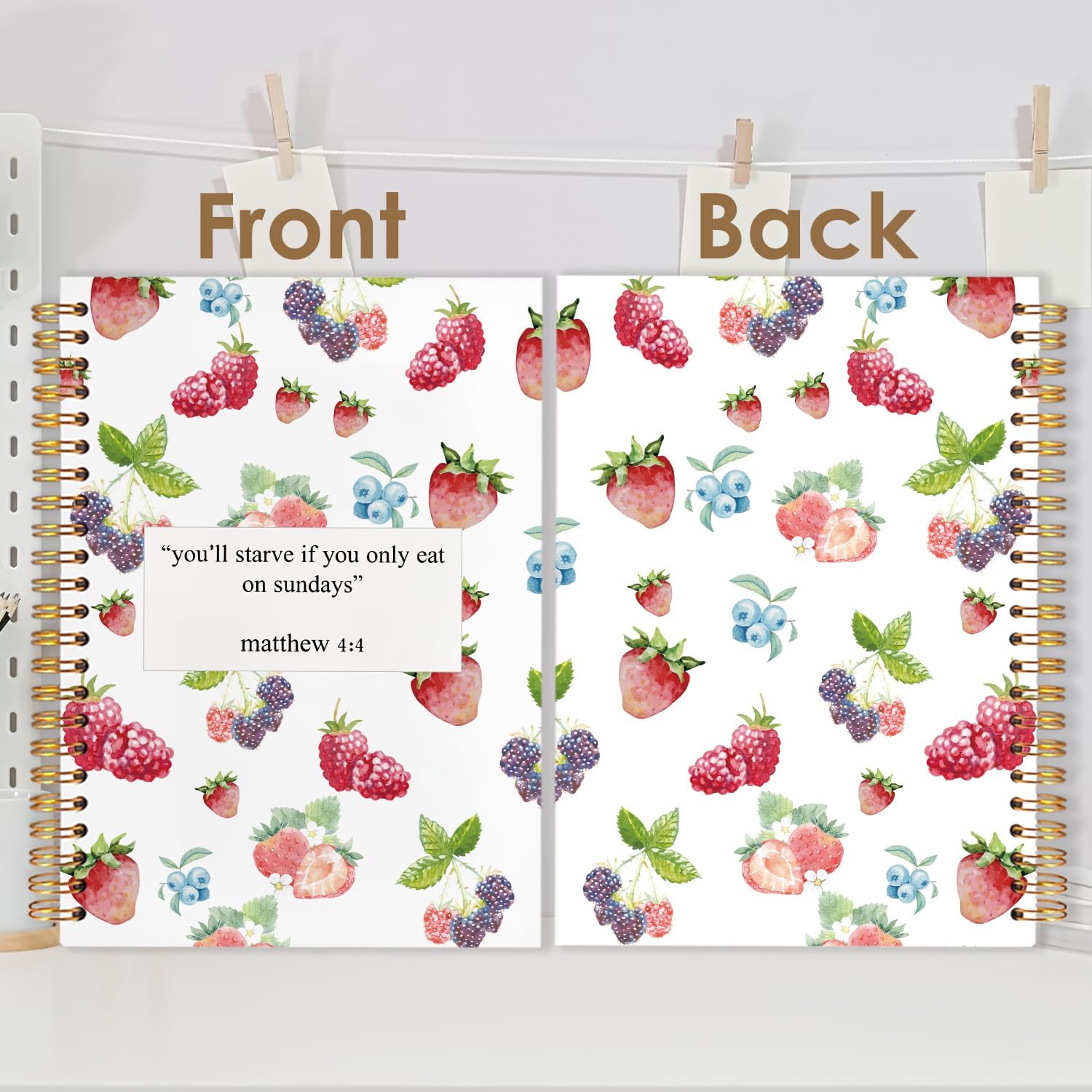Motivational Fruit Christian Spiral Journal Notebook 5.5x8.3in, You'll Starve If You Only Eat on Sundays Inspirational Bible Prayer Journal, Christian Notebooks for Note Taking