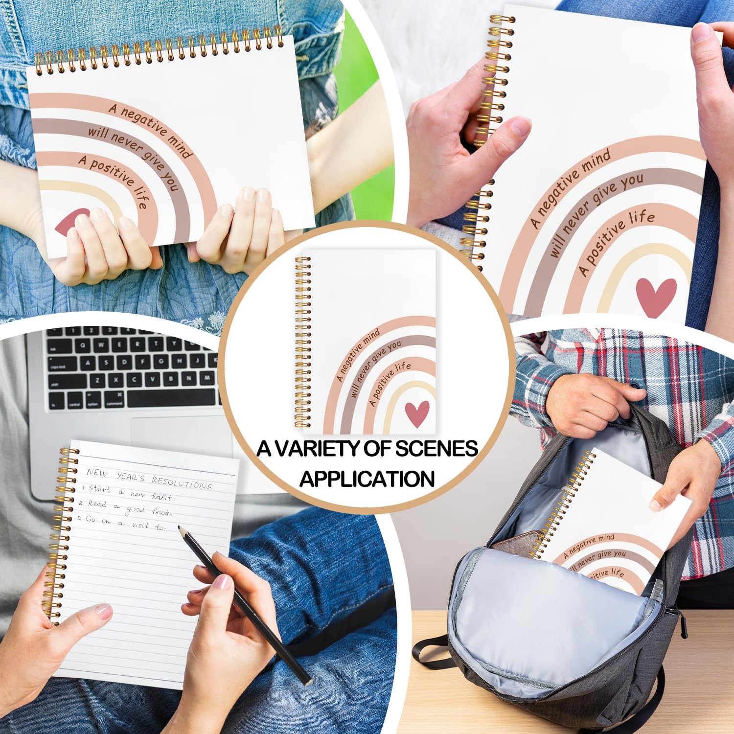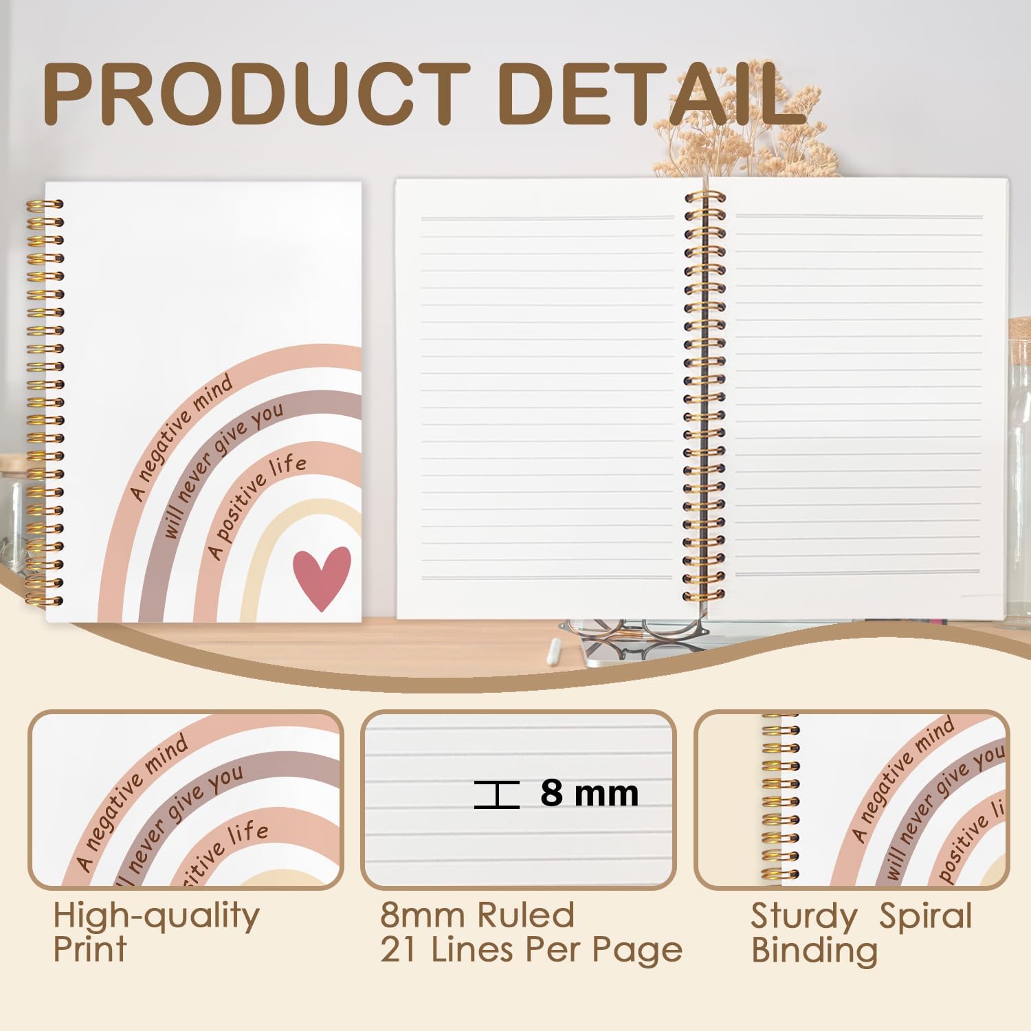 Boho Rainbow Inspirational Spiral Journal Notebook 5.5x8.3in, Affirmation Journal for Women, A Negative Mind Will Never Give You a Positive Life Motivational Notebooks for Note Taking