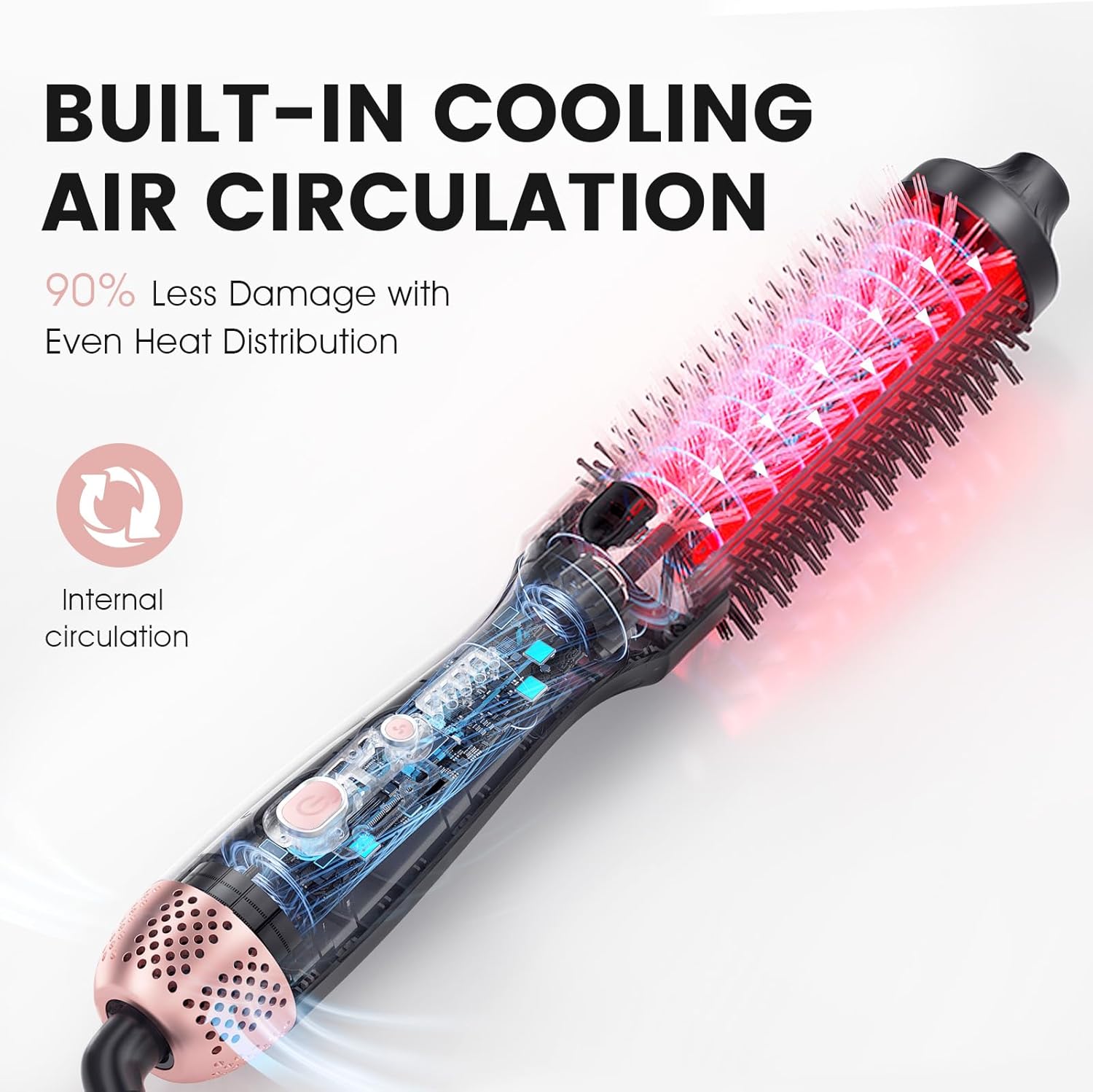- LESS DAMAGE WITH BUILT-IN AIR CIRCULATION: With unique built-in cooling air circulation, this thermal round brush allows for a great deal of heat to be evenly distributed across the heating tubes, allowing for the best styling results while avoiding the concentration of heat that can cause burns to the hair. In just 10 minutes, you can feel the salon-quality hair protection and styling experience!
