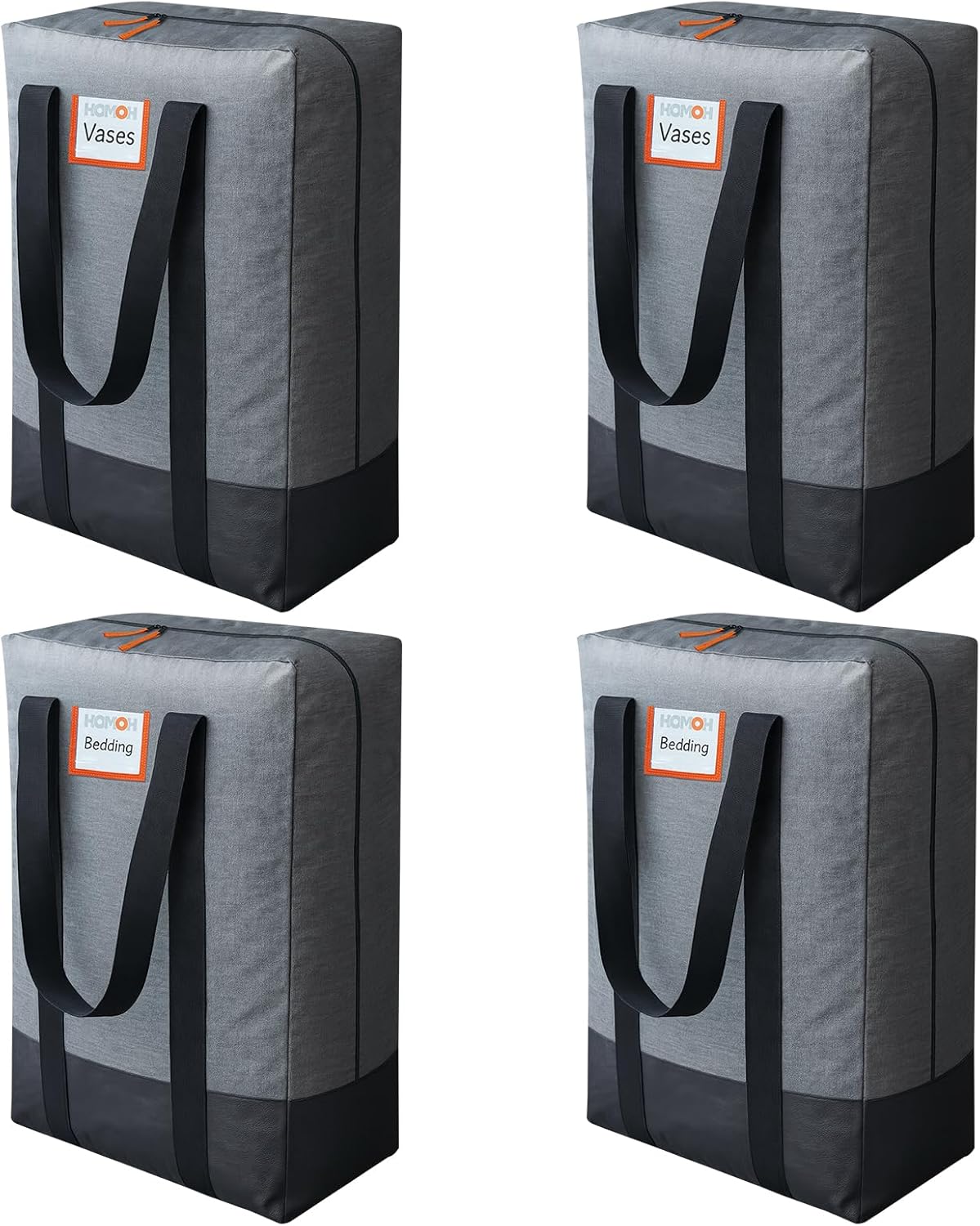 4 Pack Moving Bags Heavy Duty, Storage Bags for Clothes, Large Packing Tote with Wrap Around Handles, Internal Compression Straps, Alternative to Moving Boxes, Grey and Black