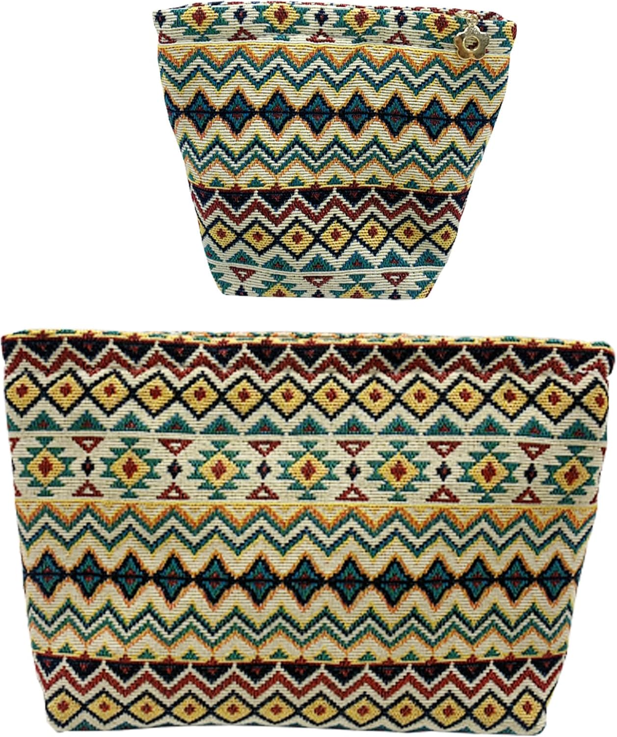 2 Pcs Makeup Bags, Large Cosmetic Bag Travel Toiletry Bag Organizer for Women, Embroidery Craft, Stripe Makeup Bag Small Cosmetic Pouch Purse with Zipper Gifts for Girls Teen