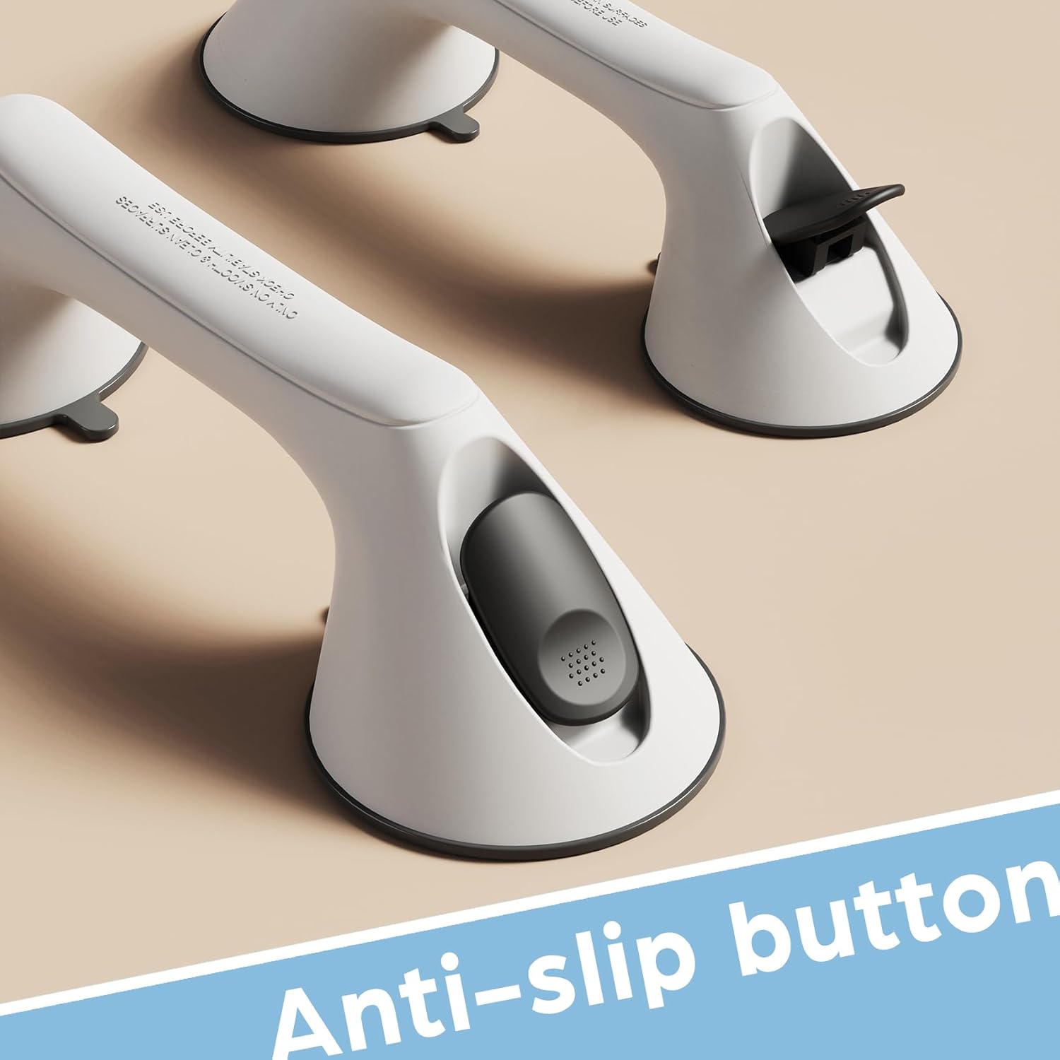 - IMPORTANT NOTE:Only suitable for tiles measuring 4×4 inches or larger. please pay attention that the suction grab bars for shower ONLY sticks on smooth and non-porous AIRTIGHT walls which are NOT air-permeable like metal, glass, tile, marble, stainless steel and acrylic but does NOT apply on uneven tile, wallpaper, dry wall, porous wall, painted wall,etc. Please don't put all the body on the shower grip,handicap grab bars are only used to assist and properly support part of body weight.