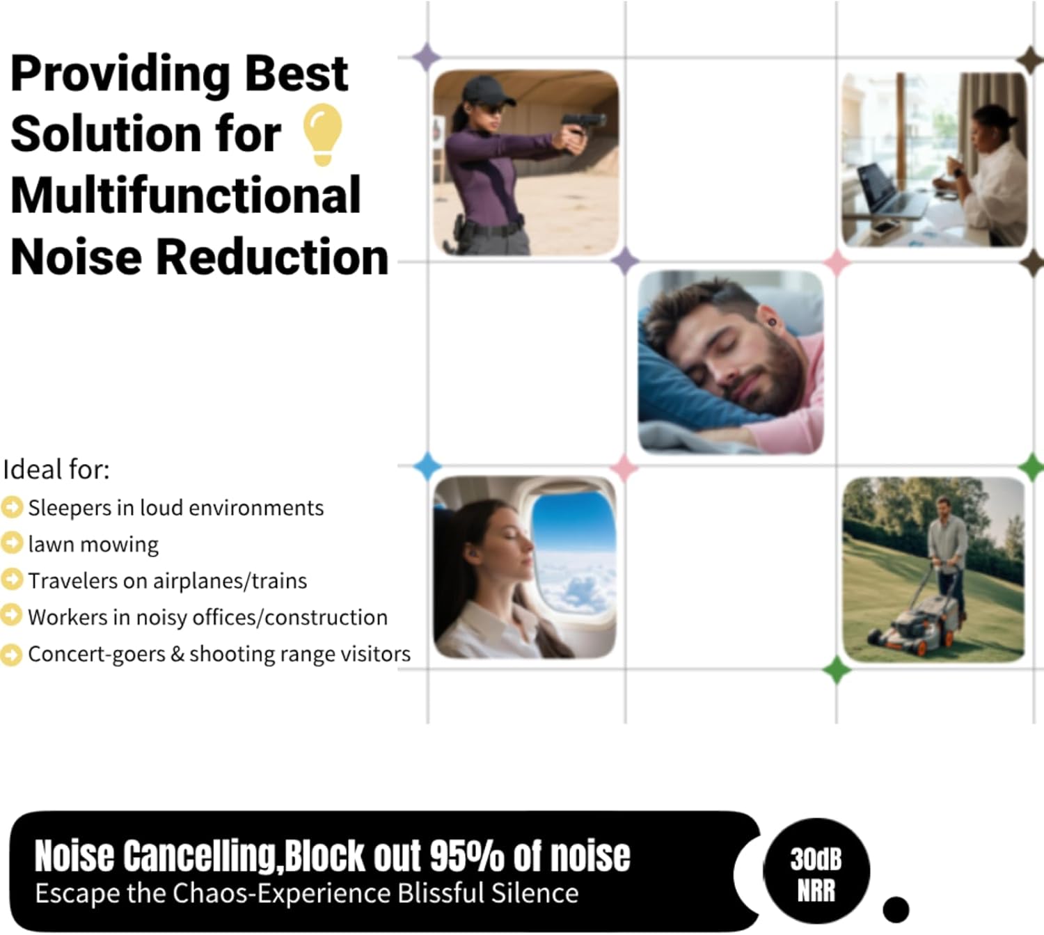 - Noise Cancelling Earplugs: Ultimate Sound Protectionâ-Our advanced noise-cancelling technology effectively reduces a wide ârangeâ of sounds, from loud concerts to airplane pressure and lawn mowing. Whether you're at work, traveling, or attending a shooting range, these âear protectorsâ offer superior âsound blockingâ capabilities, ensuring your ears stay protected and undisturbed.