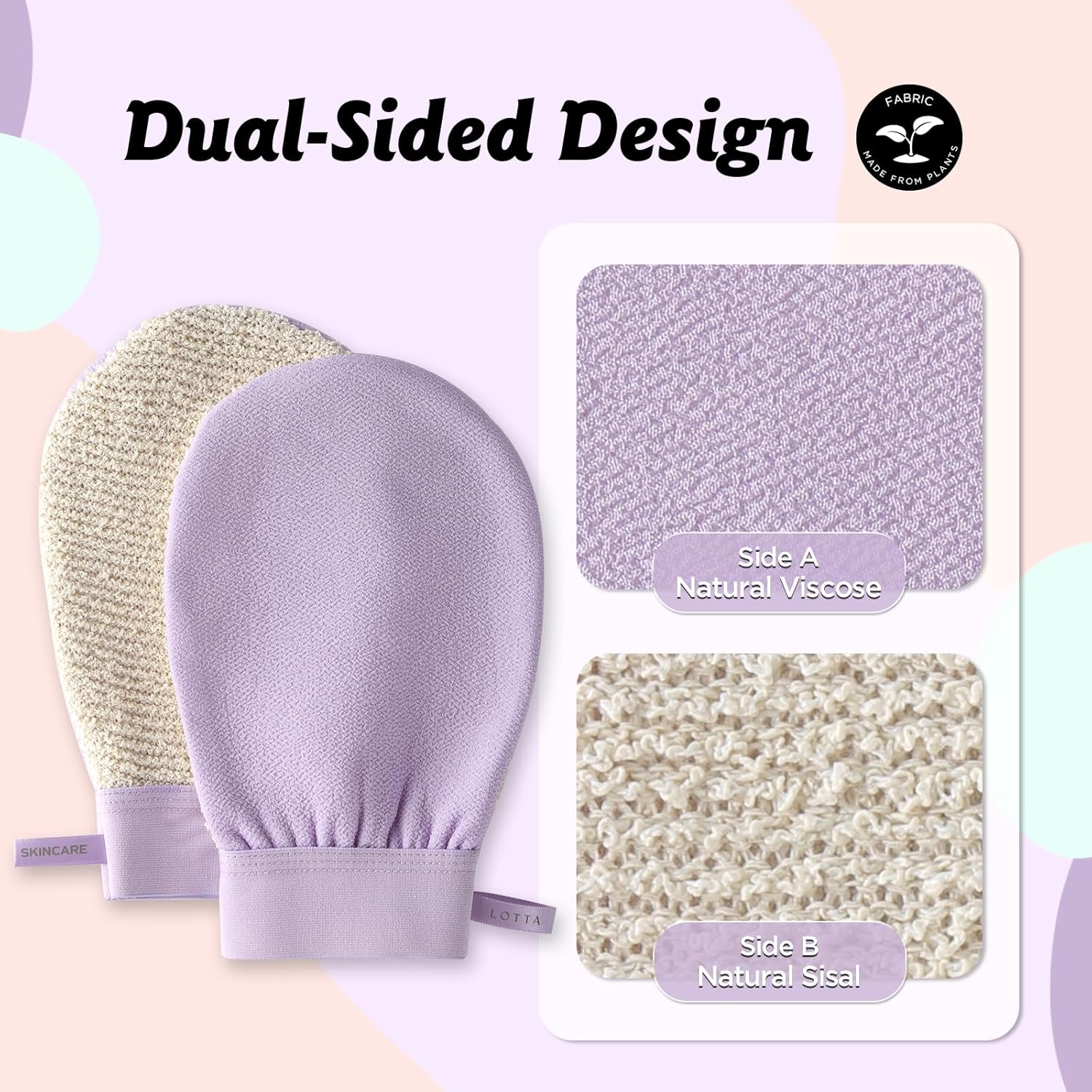 LOTTA Dual-Sided Exfoliating Gloves - Natural Viscose & Sisal for Deep Body Scrub & Massage - Gentle for Sensitive Skin - Replaces Loofah (Purple-Medium)